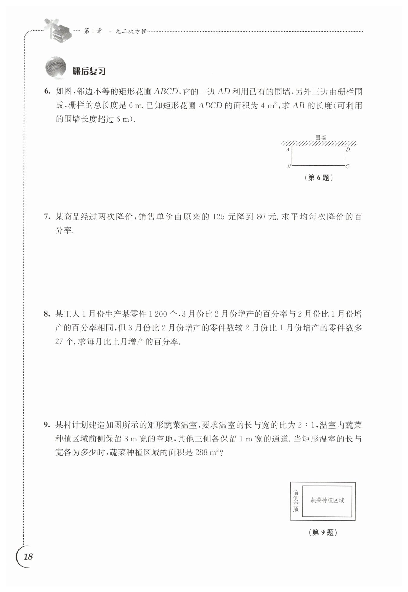 所以種植區(qū)域面積為$(2x - 2)(x - 4) = 288,$