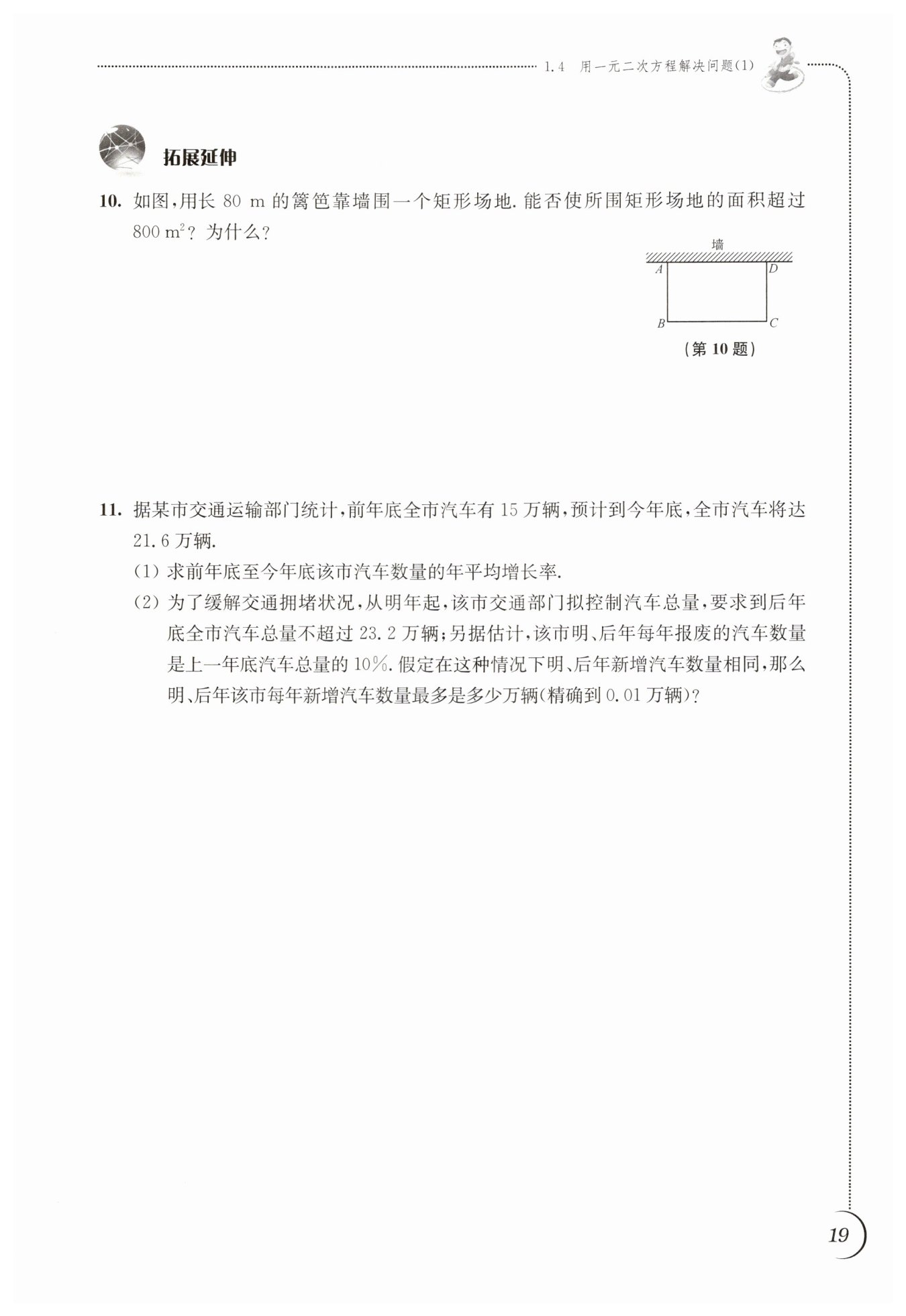 則明年底全市的汽車擁有量為$21.6\times90\% + y$萬輛,