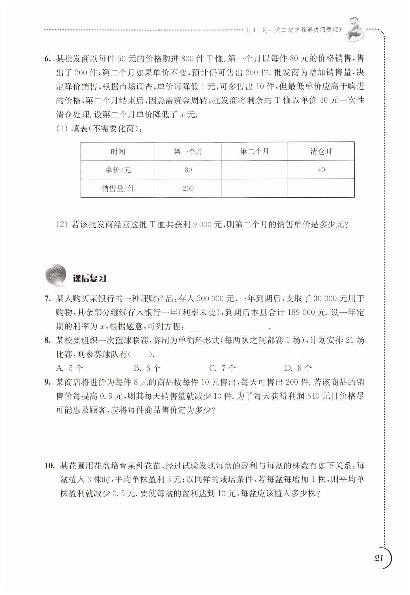 解:設(shè)第二個(gè)月的單價(jià)降低$x$元,則第二個(gè)月的單價(jià)為$(80 - x)$元,銷(xiāo)售量為$(200 + 10x)$件,清倉(cāng)時(shí)的銷(xiāo)售量為$[800 - 200-(200 + 10x)]$件。