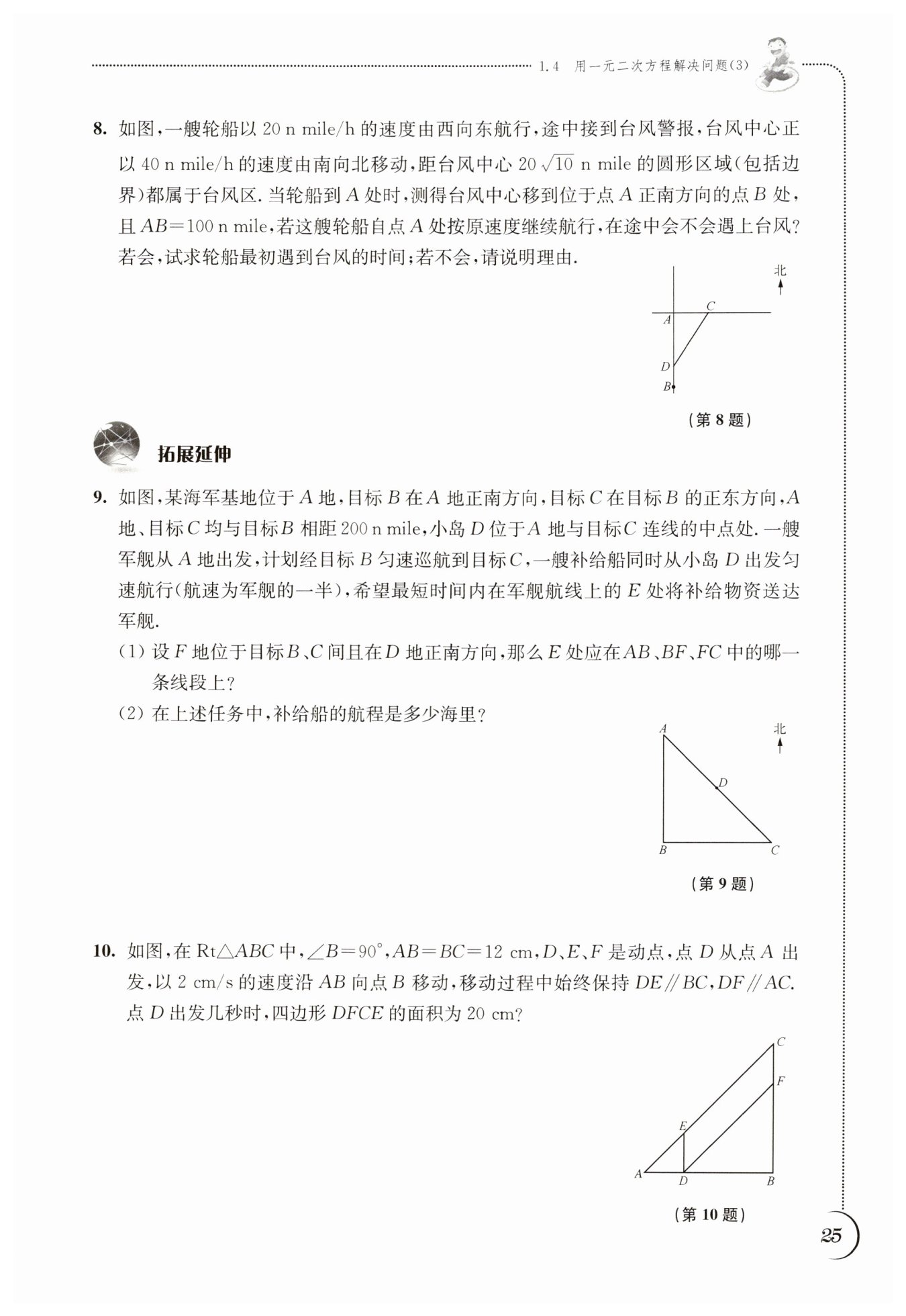 ∴$ DE = AD = 2t \, \text{cm} ,$$ BF = DB = (12 - 2t) \, \text{cm} 。$