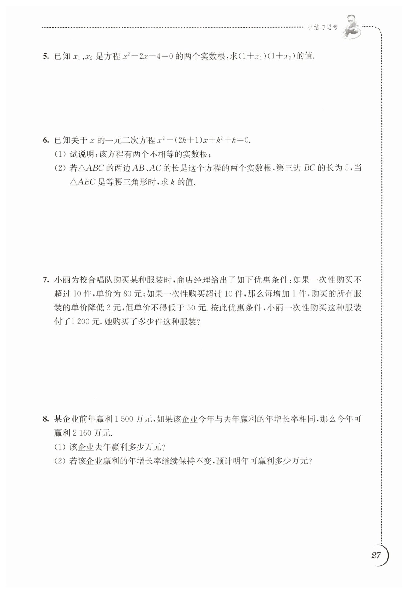 (1)證明:對于一元二次方程$x^2 - (2k + 1)x + k^2 + k = 0,$其判別式$\Delta = [-(2k + 1)]^2 - 4(k^2 + k)。$