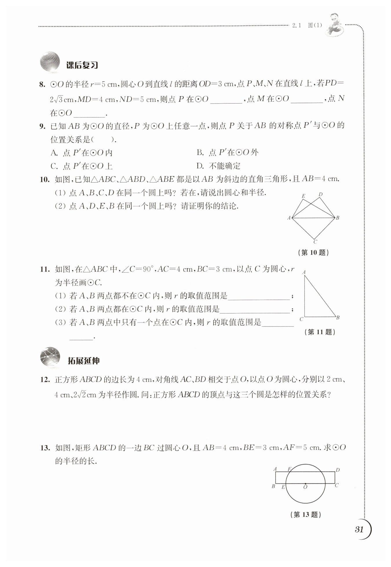 圓心O的距離為$ 2\sqrt{2}\ \mathrm {cm}$小于半徑