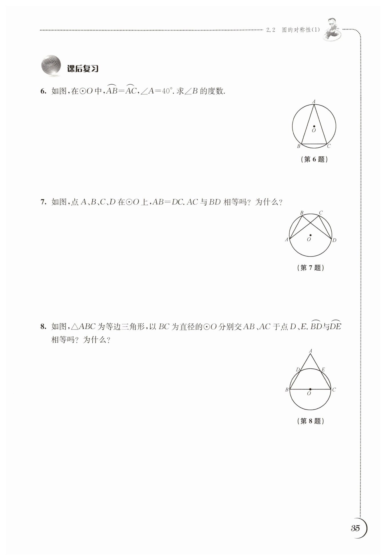 $\therefore \widehat{BD} = \widehat{DE}$(在同圓或等圓中,相等的圓心角所對的弧相等)。