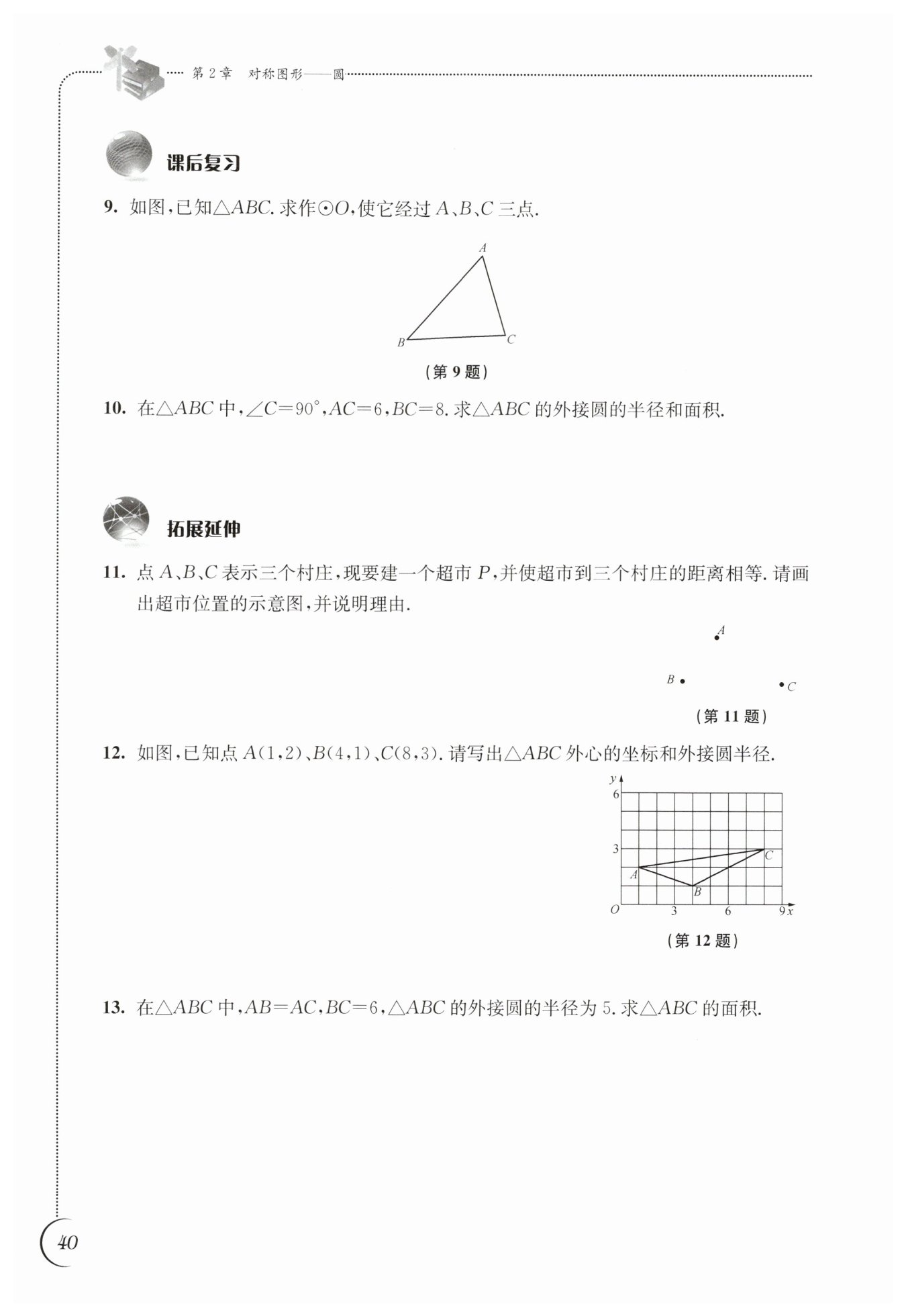 故△ABC的外心坐標(biāo)為(4, 6),外接圓半徑為5。