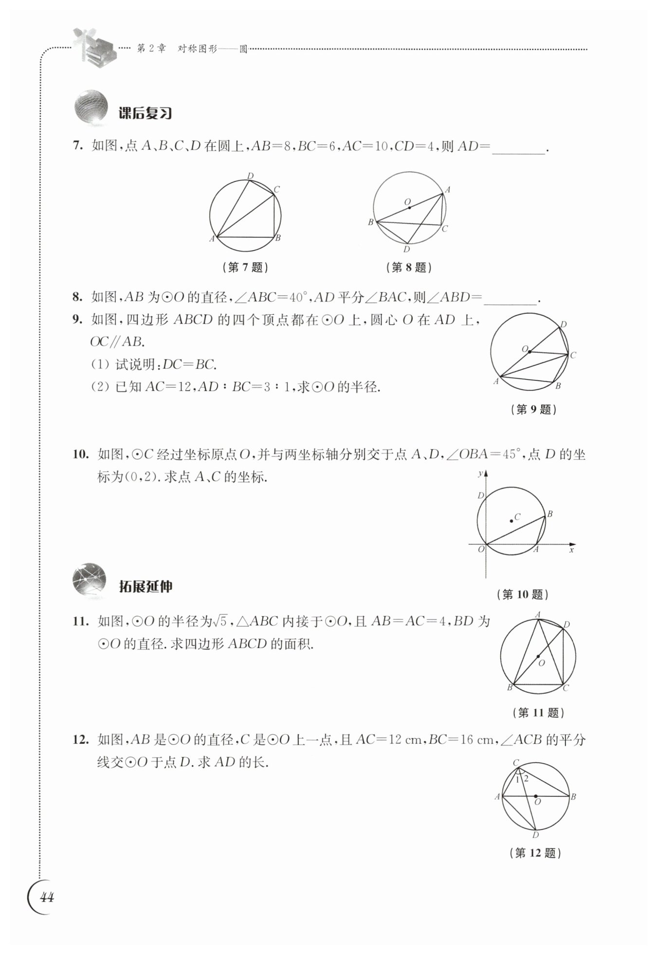 因?yàn)锽D是直徑,所以BD=2$\sqrt{5},$且∠BAD=∠BCD=90°。