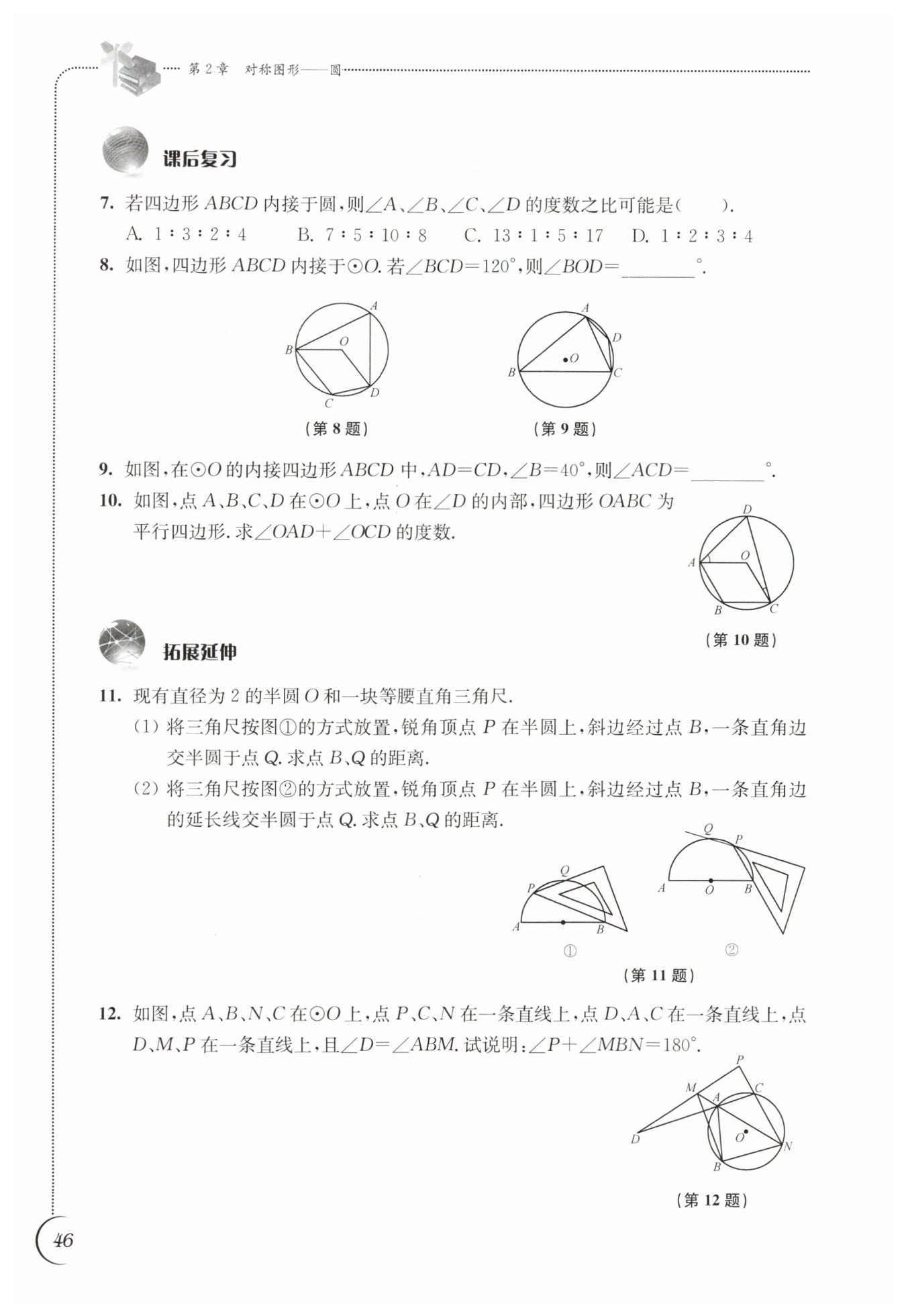 因為四邊形ABCD是圓的內(nèi)接四邊形,所以∠D+∠B=180°。