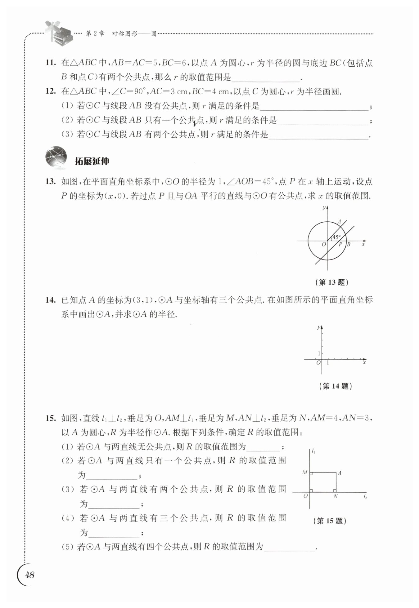 點A到y(tǒng)軸距離$d_2=3,$半徑$r=d_2=3。$