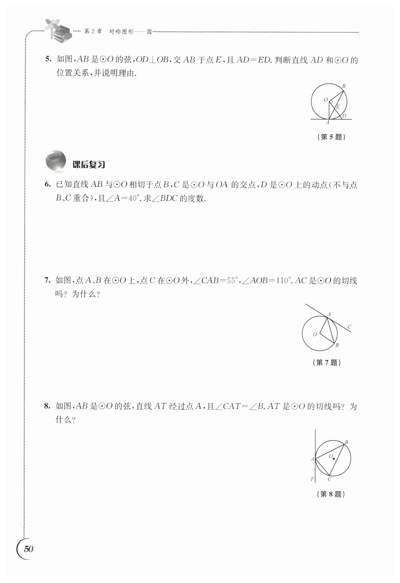 因?yàn)?\angle BDC$是$\overset{\frown}{BC}$所對(duì)的圓周角,$\angle BOC$是$\overset{\frown}{BC}$所對(duì)的圓心角,所以$\angle BDC=\frac{1}{2}\angle BOC=\frac{1}{2}\times50^\circ = 25^\circ。$