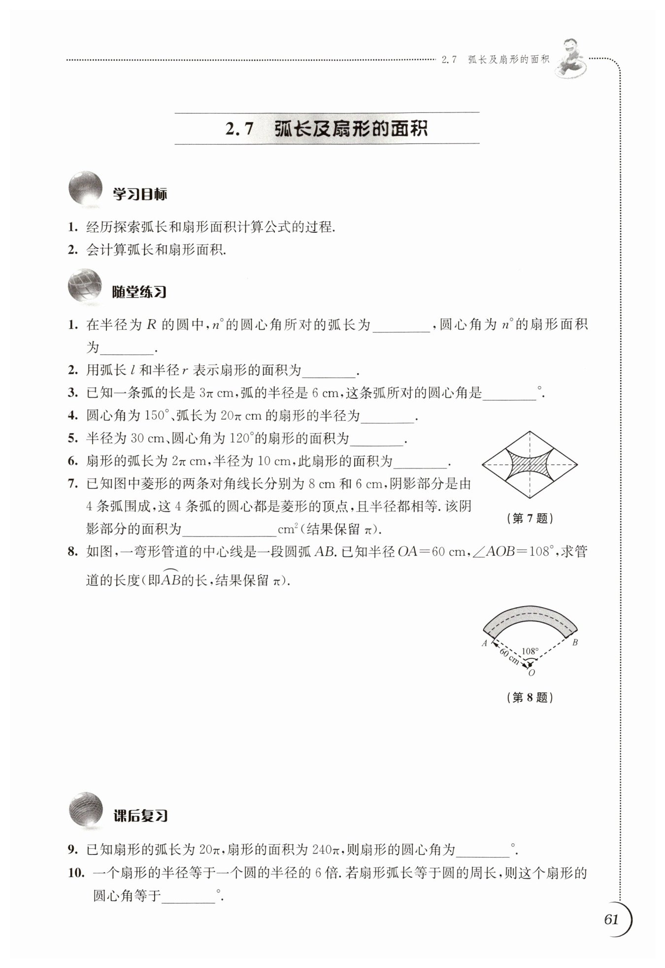 解:已知圓弧$AB$所在圓的半徑$OA = 60\ \mathrm{cm},$圓心角$\angle AOB=108^{\circ}。$根據(jù)弧長公式$l=\frac{n\pi r}{180}$(其中$n$為圓心角度數(shù),$r$為半徑),可得$\overset{\frown}{AB}$的長為:$\frac{108\pi\times60}{180}=36\pi\ \mathrm{cm}。$