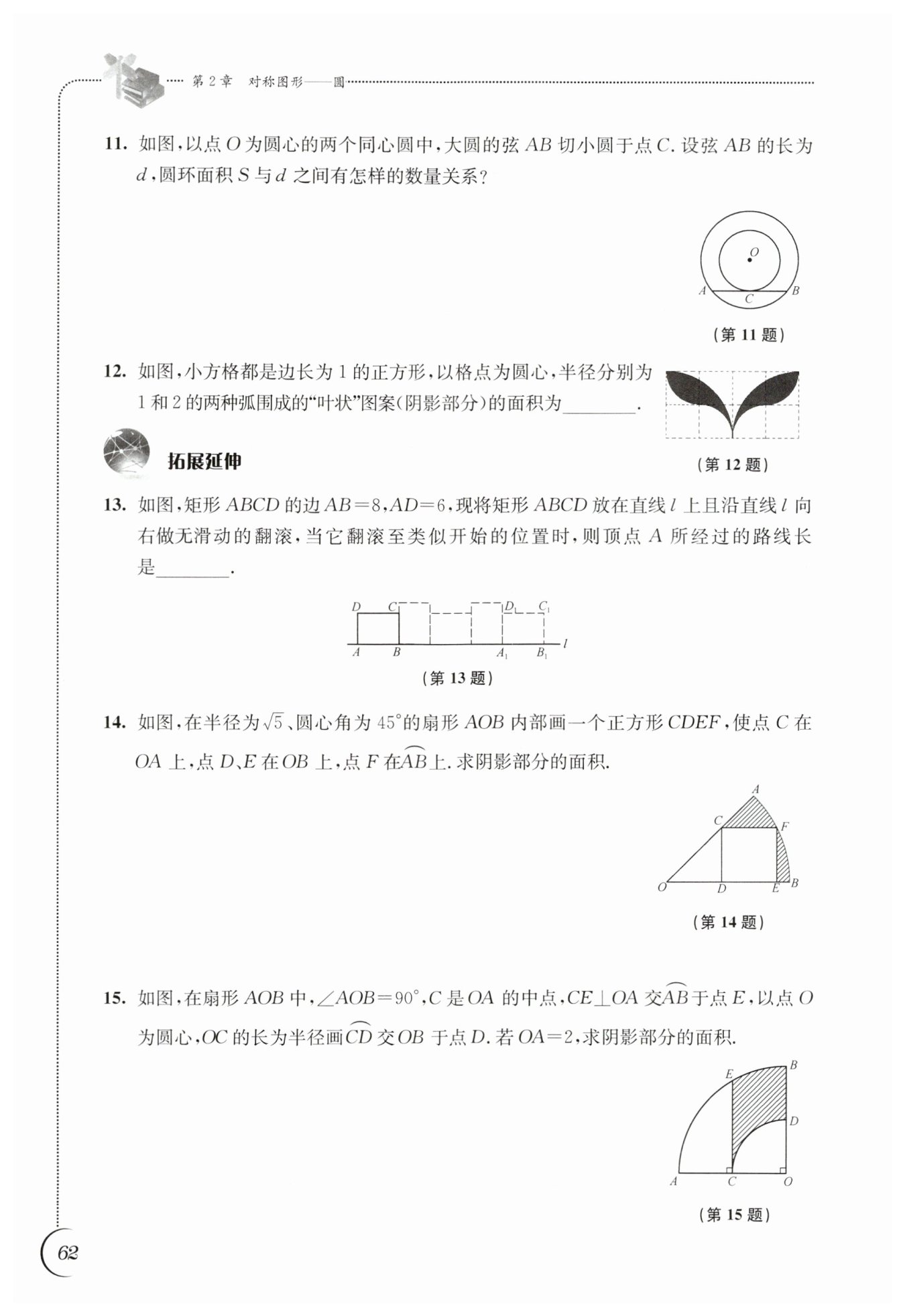 S扇形ABO=$\frac{90\pi\times2^2}{360}=\pi;$