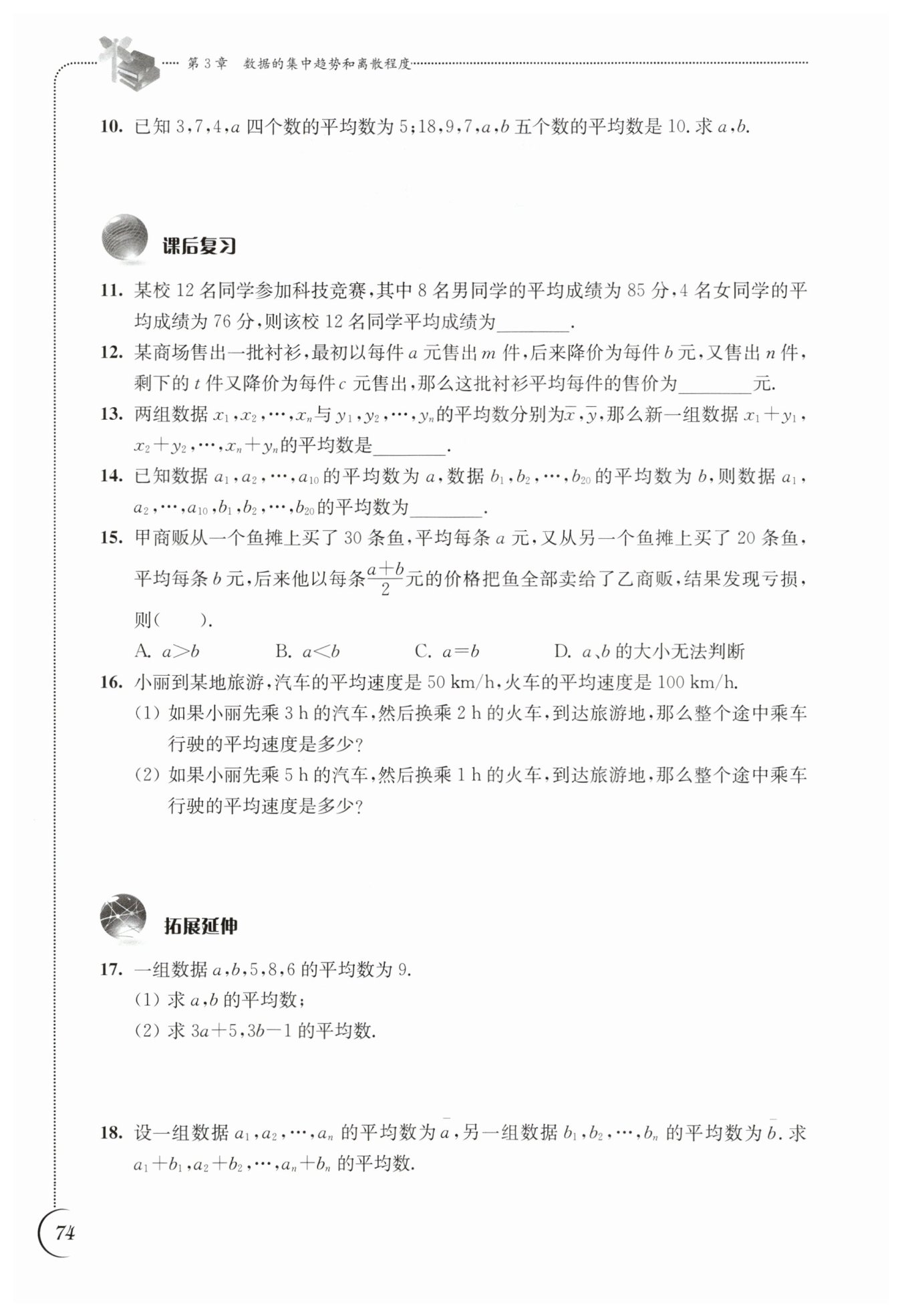 又因?yàn)槲鍌€(gè)數(shù)$18,9,7,a,b$的平均數(shù)是$10,$將$a = 6$代入,根據(jù)平均數(shù)定義可得:
