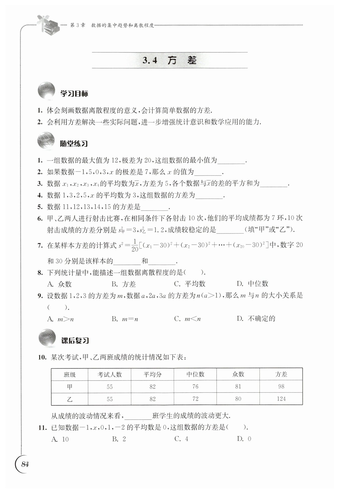 方差 $s^2 = \frac{1}{5}[(-1-0)^2 + (2-0)^2 + (0-0)^2 + (1-0)^2 + (-2-0)^2]$