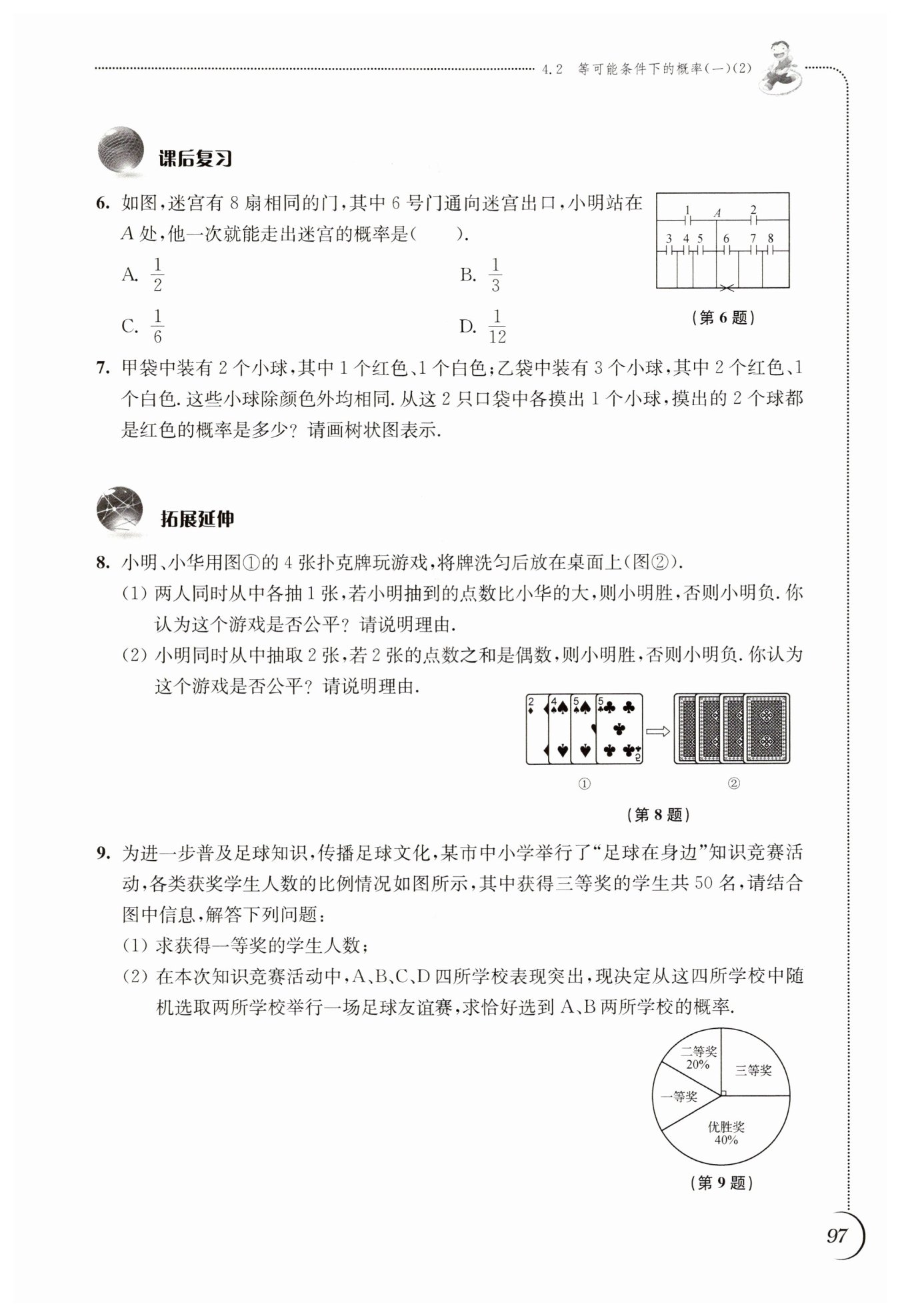 4張牌的點數(shù)分別為2、4、5、5。兩人同時各抽1張,所有可能的結(jié)果有:(2,4)、(2,5)、(2,5)、(4,2)、(4,5)、(4,5)、(5,2)、(5,4)、(5,5)、(5,2)、(5,4)、(5,5),共12種等可能結(jié)果。