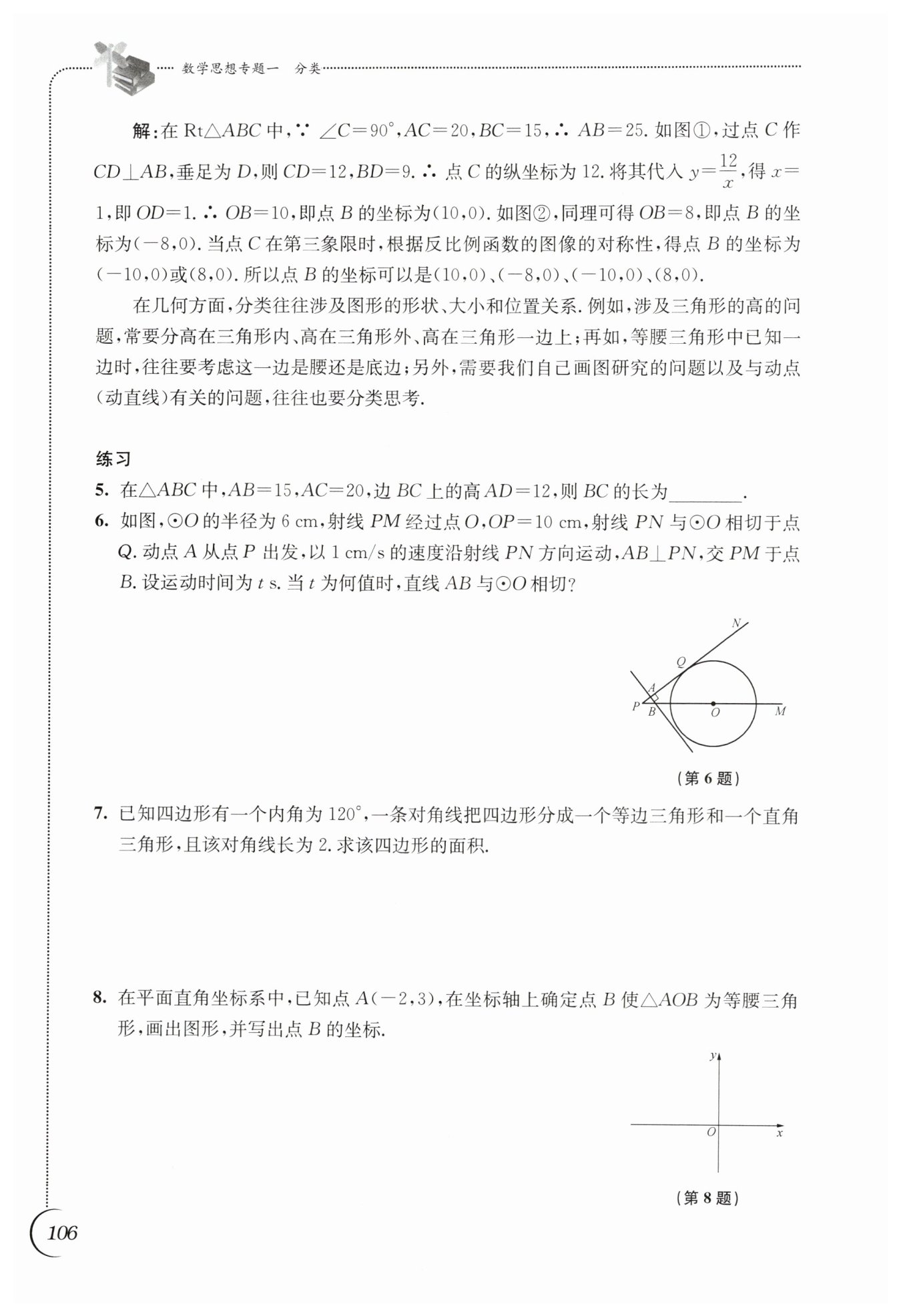 $設PA=t,當AB與\odot O相切時,OA平分\angle POQ,我們還可以利用角平分線性質(zhì):$