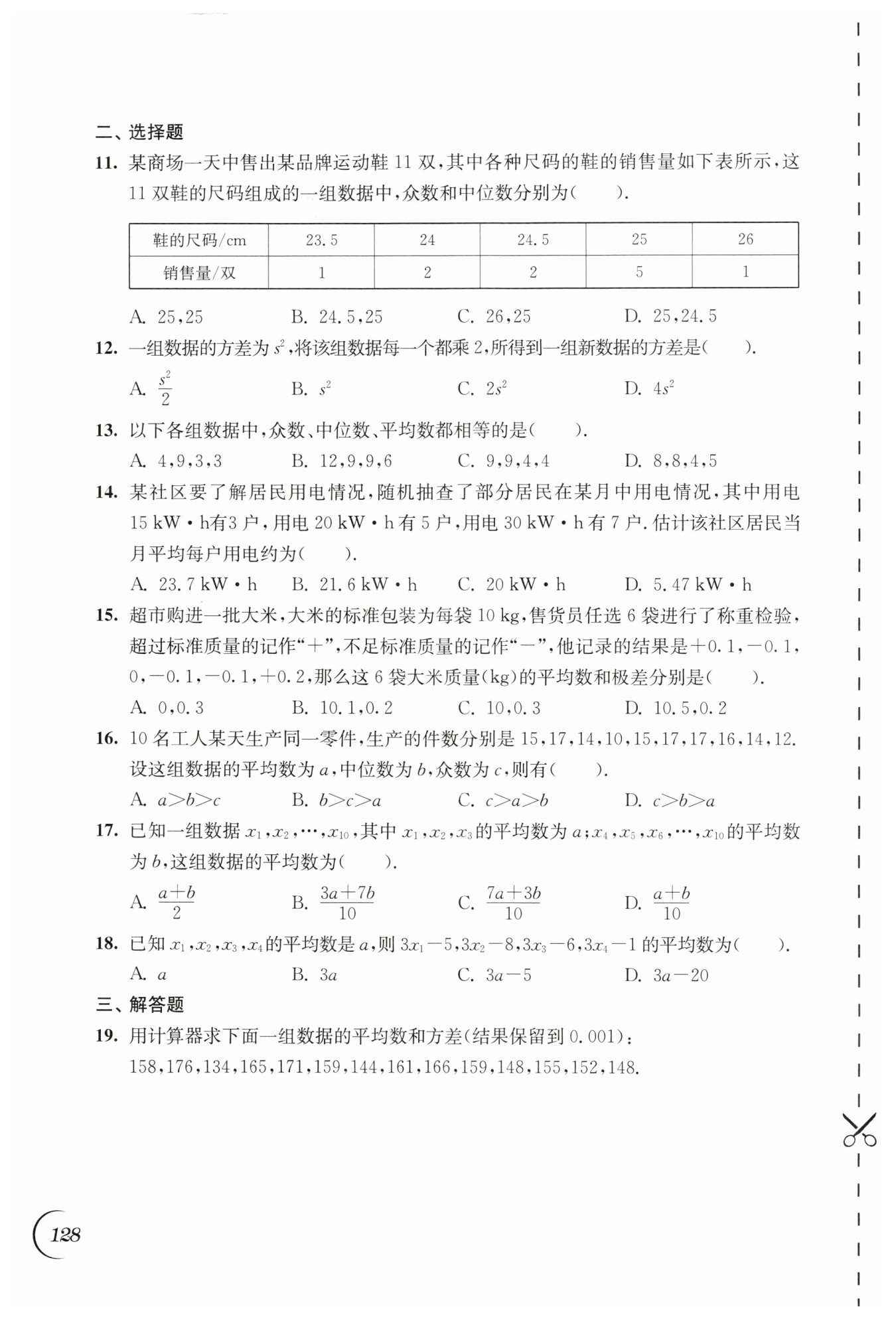 在這組數(shù)據(jù)中,數(shù)字17出現(xiàn)的次數(shù)最多(3次),所以眾數(shù) $c = 17$。