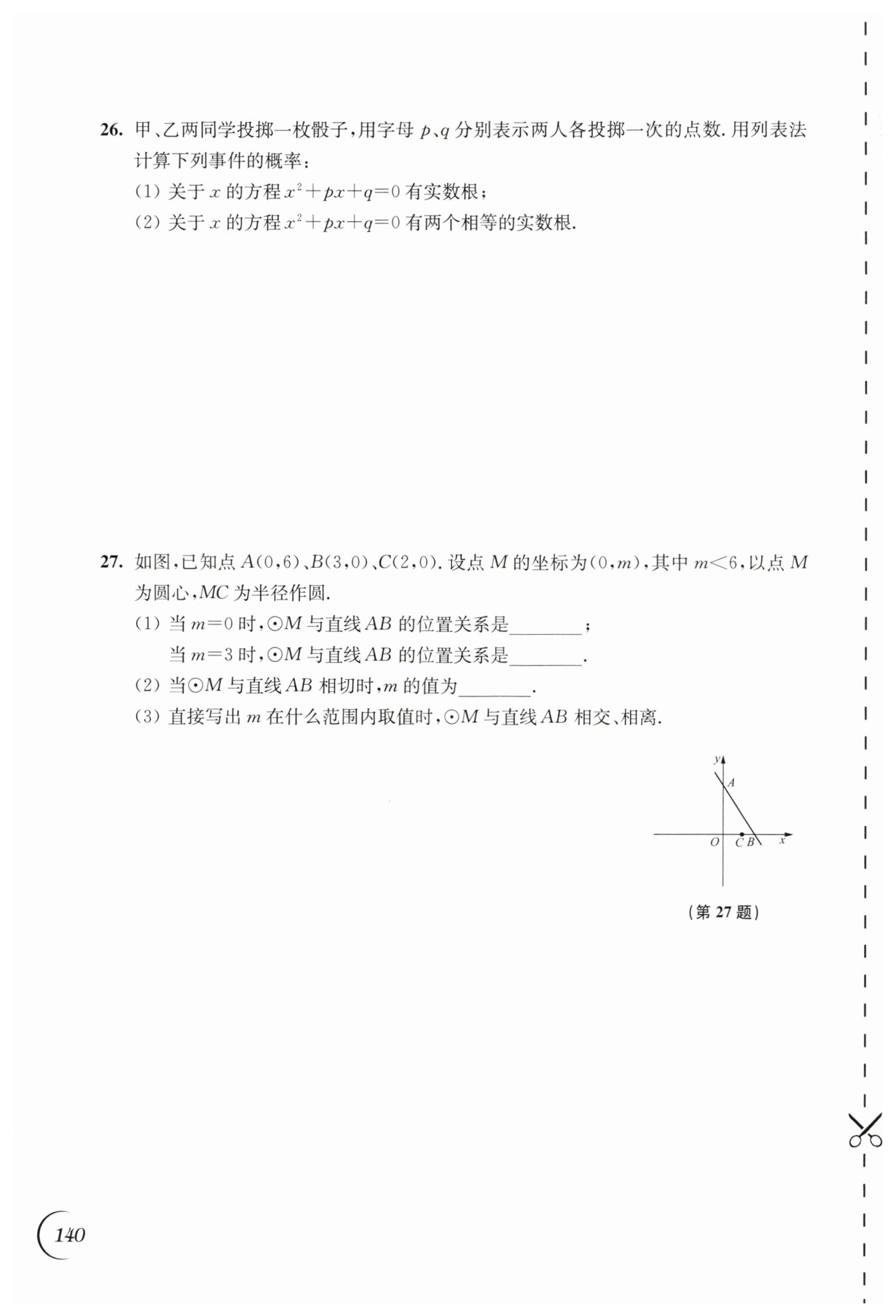 $P(有兩個(gè)相等實(shí)數(shù)根)=\frac{2}{36}=\frac{1}{18}。$