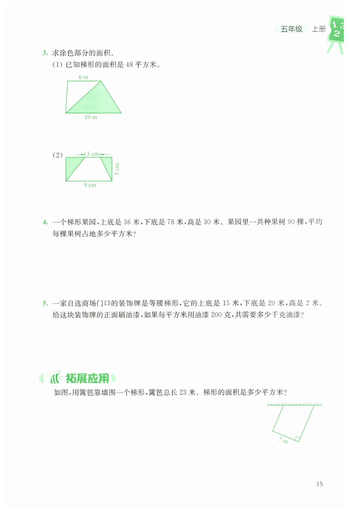 首先求梯形上底與下底的和:因?yàn)榛h笆靠墻圍梯形,籬笆總長23米,梯形的高是7米,那么梯形上底與下底的和為$23 - 7 = 16$米。然后根據(jù)梯形面積公式計(jì)算面積:梯形的面積公式為$S=(a + b)h÷2$(其中$a$、$b$分別為上底和下底,$h$為高)。把上底與下底的和16米,高7米代入公式,可得$S = 16×7÷2 = 56$平方米。
