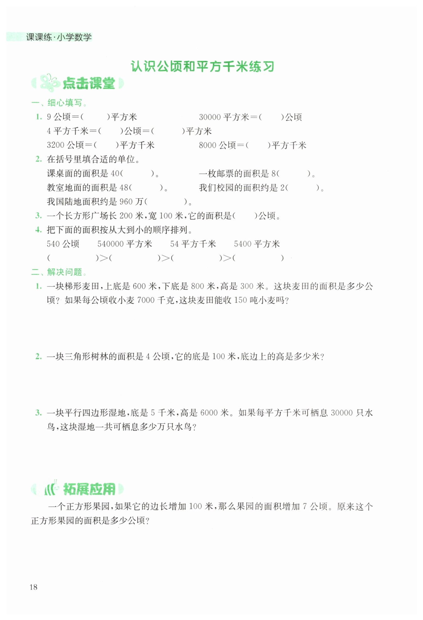 4. 對于 3200公頃等于多少平方千米,我們用3200除以100,得到32平方千米。
