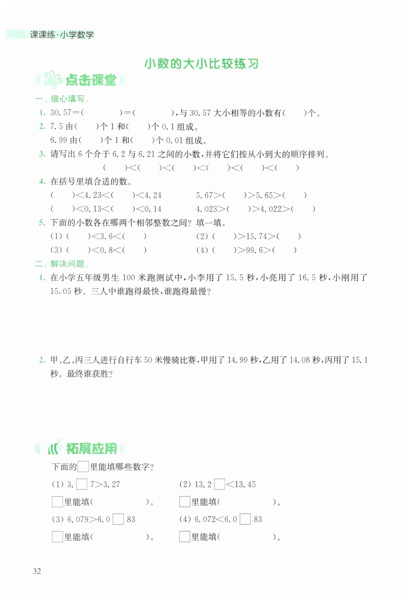 【解析】: 首先確定介于6.2和6.21之間的小數(shù),這些小數(shù)應(yīng)當(dāng)大于6.2且小于6.21。 考慮到小數(shù)的大小比較,我們可以從左到右逐位比較小數(shù)點后的數(shù)字。 6.2的百分位是0,而6.21的百分位是1, 所以我們需要找到百分位在0和1之間的小數(shù), 同時,我們還可以考慮千分位、萬分位等的數(shù)字來確定小數(shù)的大小。 以下是6個滿足條件的小數(shù),并按從小到大的順序排列: 6.201,6.202,6.203,6.204,6.205,6.206。