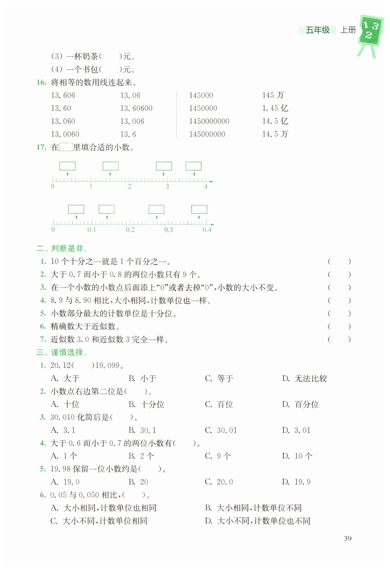 13.006與13.0060相等(小數(shù)點后的0不影響數(shù)值)。