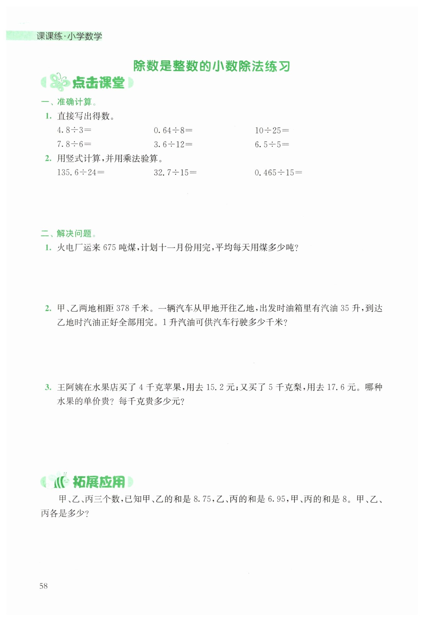 梨的單價:$17.6\div5 = 3.52$(元/千克);