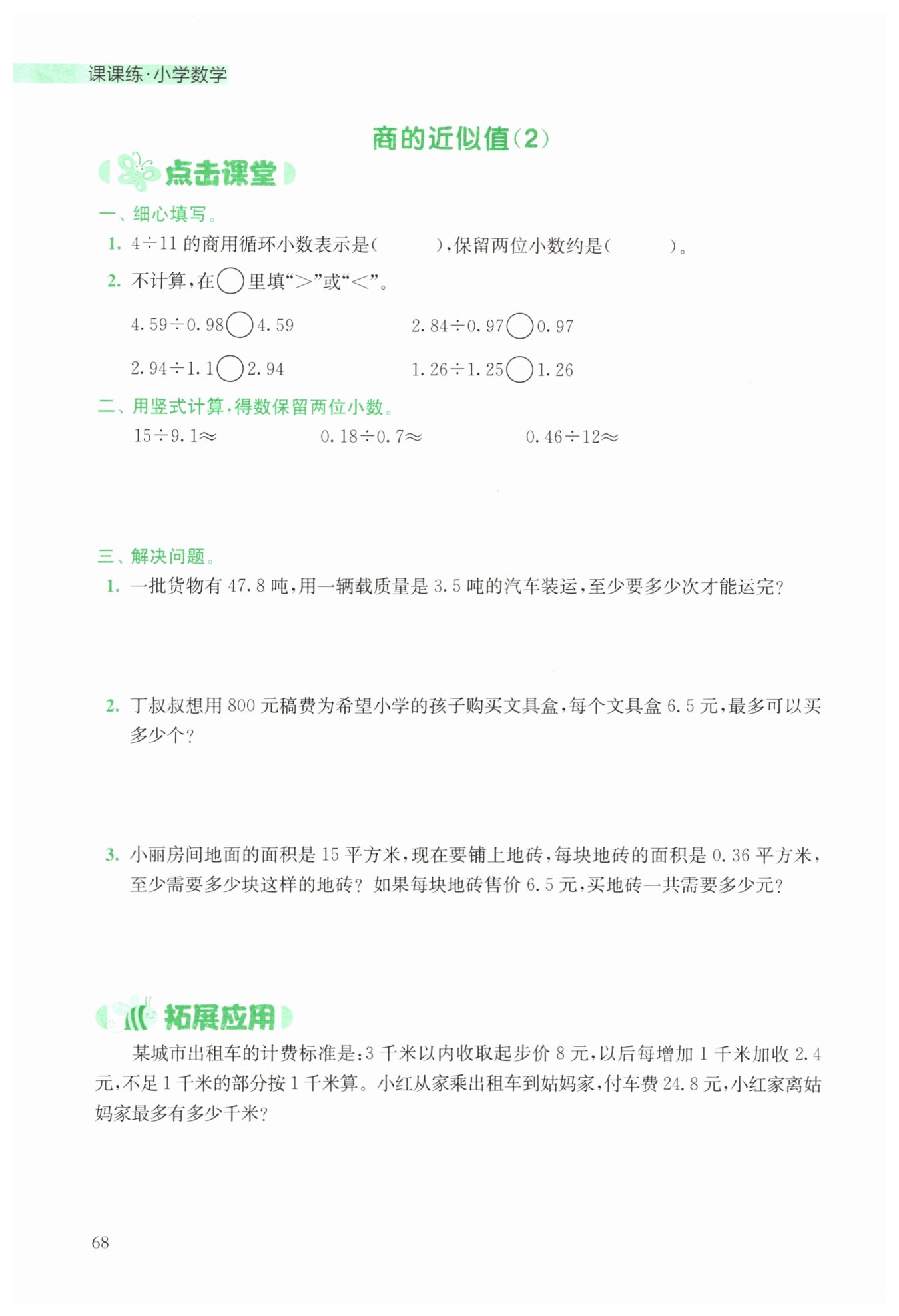 然后計算這$16.8$元對應的千米數(shù):$16.8 \div 2.4 = 7$(千米)