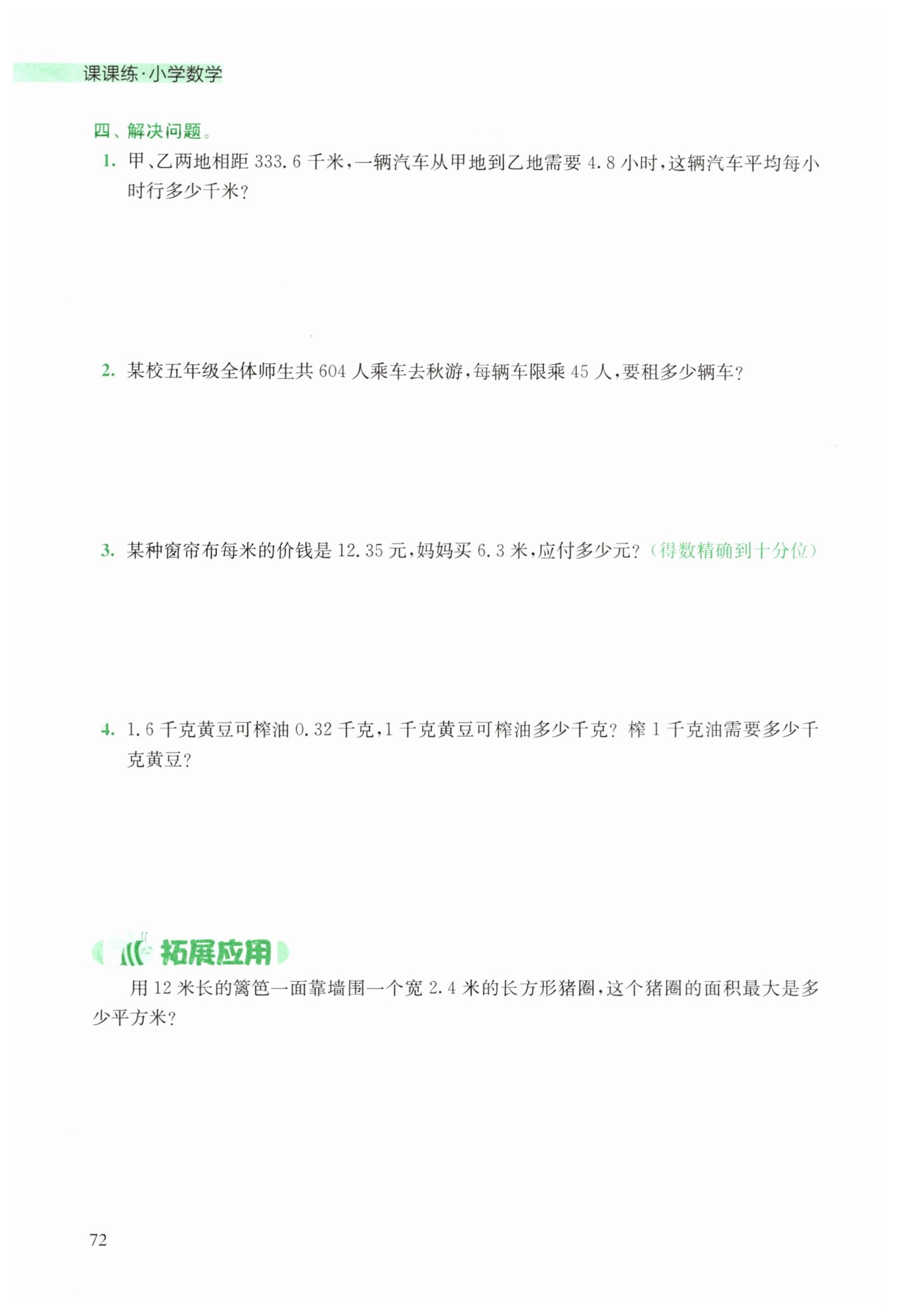 籬笆長度$=2\times$寬$+$長,即$2\times2.4+$長$=12,$長$=12 - 4.8=7.2$米。
