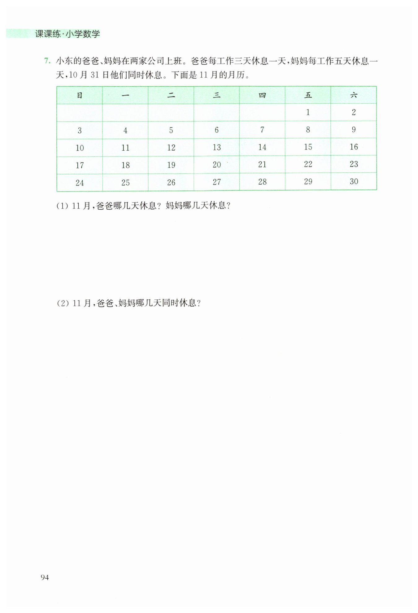 媽媽每工作5天休息1天,即每6天休息1天。10月31日休息,所以11月媽媽休息的日期依次為10月31日+6天=11月6日,之后每6天休息一次,即6日、12日、18日、24日、30日。
