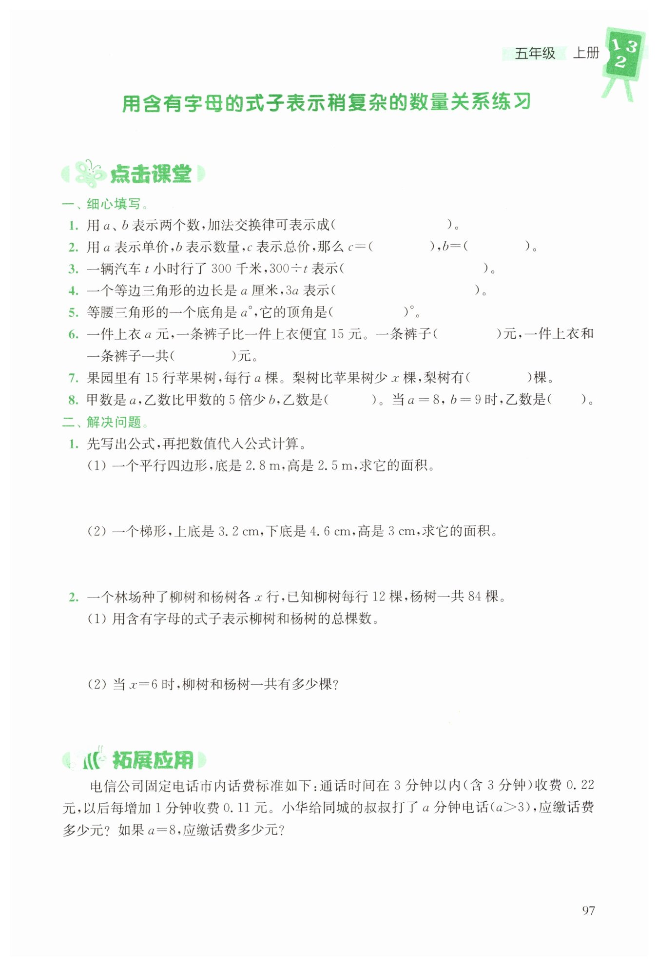 1. 已知一件上衣的價格是a元,一條褲子比一件上衣便宜15元,所以一條褲子的價格為a-15元。