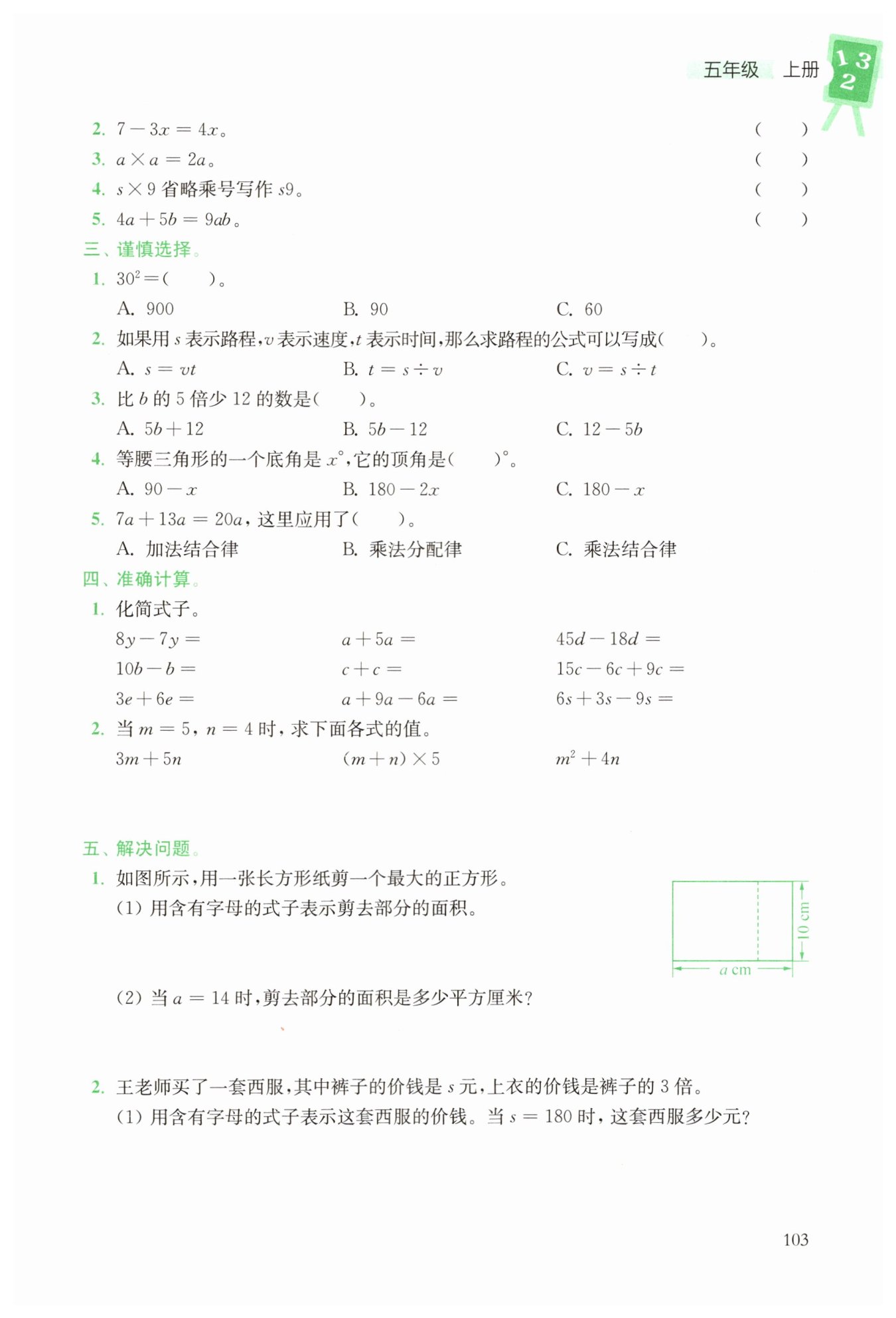比b的5倍少12的數(shù),先算b的5倍是5b,再少12,即5b-12。