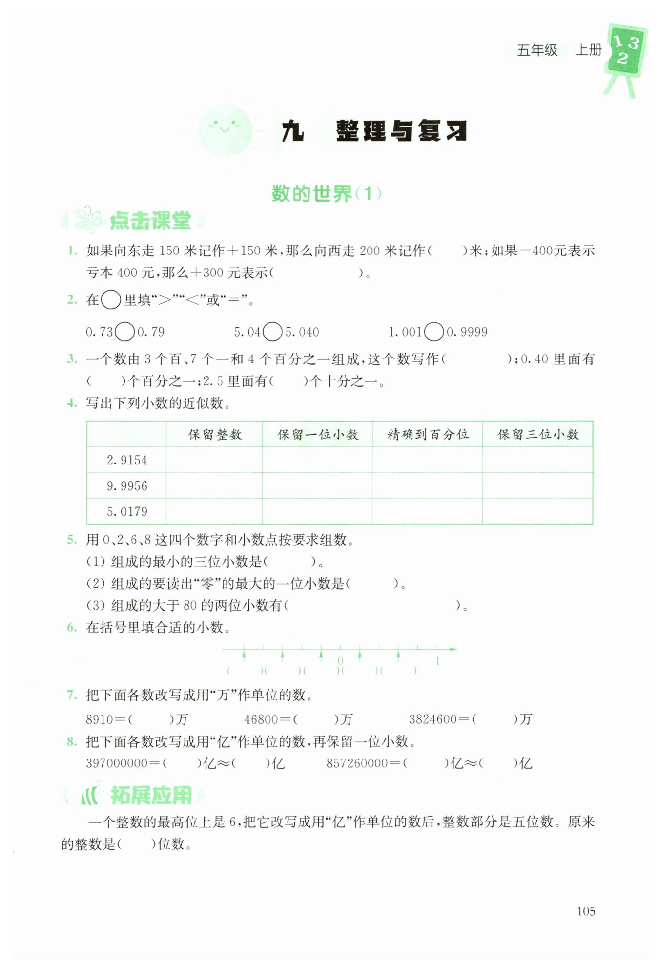 | | 保留整數(shù) | 保留一位小數(shù) | 精確到百分位 | 保留三位小數(shù) |