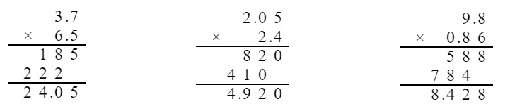 $7.8 × 9.9$ $= 7.8 × (10 - 0.1)$ $= 7.8 × 10 - 7.8 × 0.1$ $= 78 - 0.78$ $= 77.22$