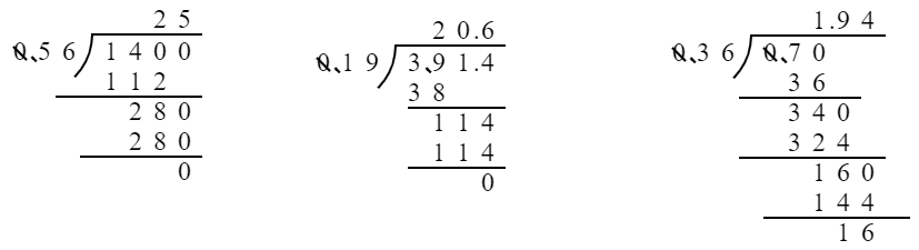 $19.2 ÷ 12.5 ÷ 8$ $= 19.2 ÷ (12.5 × 8)$ $= 19.2 ÷ 100$ $= 0.192$