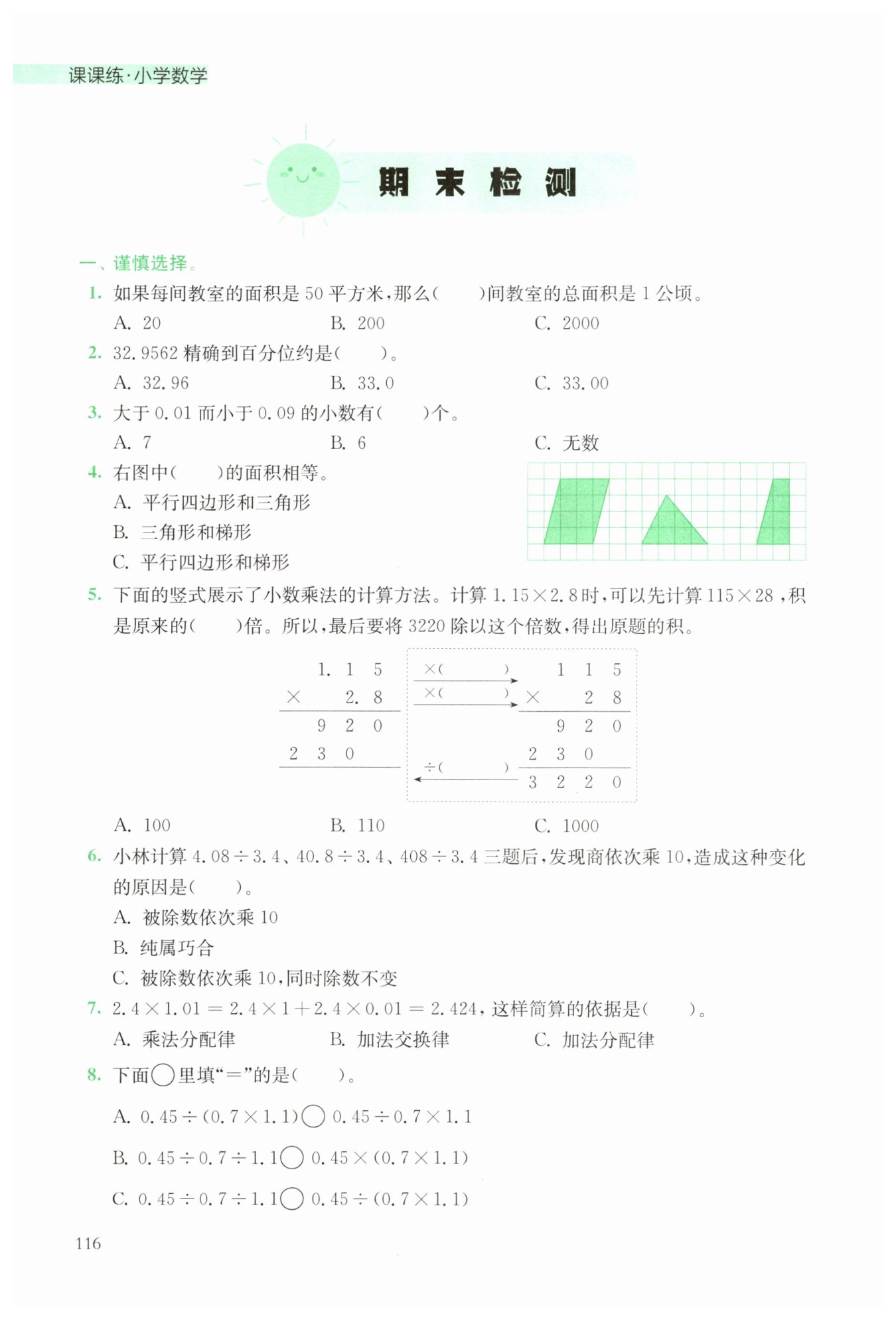A. $0.45÷(0.7×1.1)=0.45÷0.7÷1.1$,$0.45÷0.7÷1.1\neq0.45÷0.7×1.1$