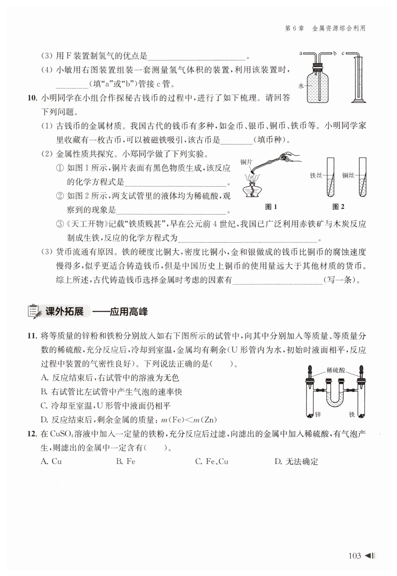 鐵絲表面有氣泡,銅絲表面無明顯現(xiàn)象