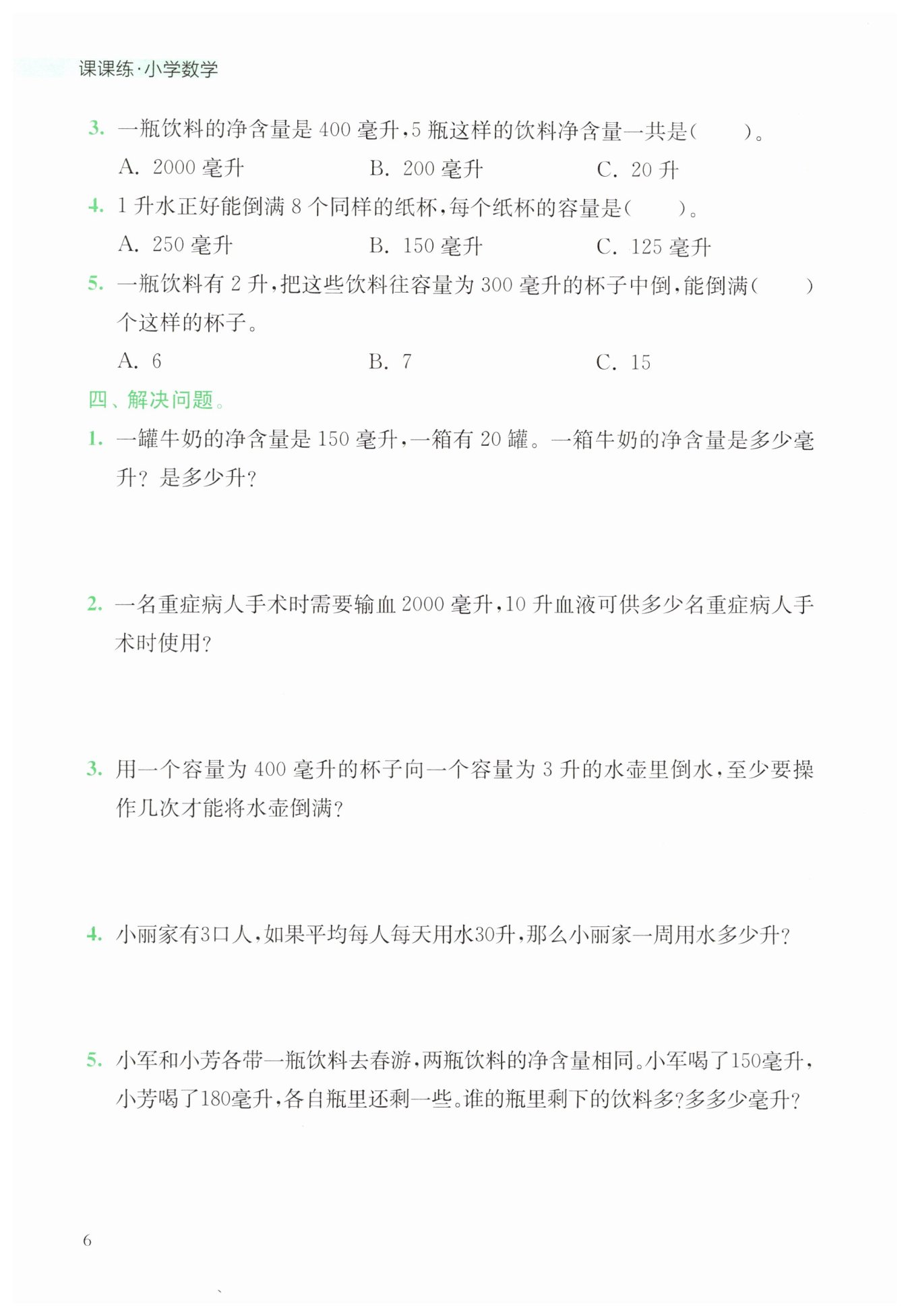 答:一箱牛奶的凈含量是3000毫升,是3升。