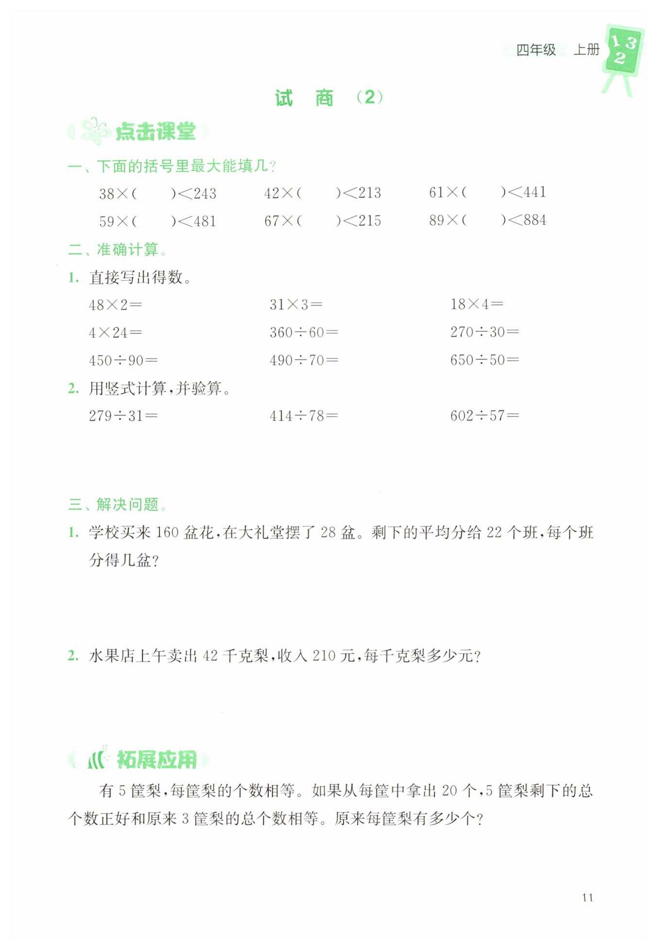 1. 計(jì)算一共拿出的梨的個(gè)數(shù):20×5=100(個(gè)) 2. 計(jì)算拿出的梨相當(dāng)于原來(lái)的筐數(shù):5-3=2(筐) 3. 計(jì)算原來(lái)每筐梨的個(gè)數(shù):100÷2=50(個(gè)) 答:原來(lái)每筐梨有50個(gè)。