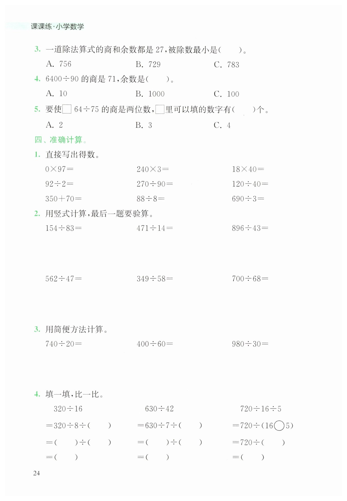 根據(jù)除法運(yùn)算中“被除數(shù)=商×除數(shù)+余數(shù)”,可得余數(shù)=被除數(shù)-商×除數(shù)。