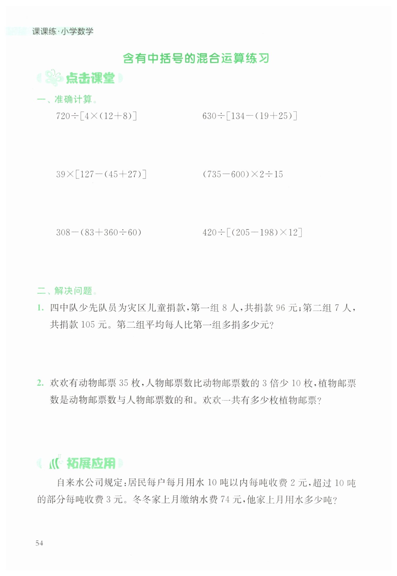 10×2=20(元) 74>20 10+(74-20)÷3=28(噸) 答:他家上月用水28噸。