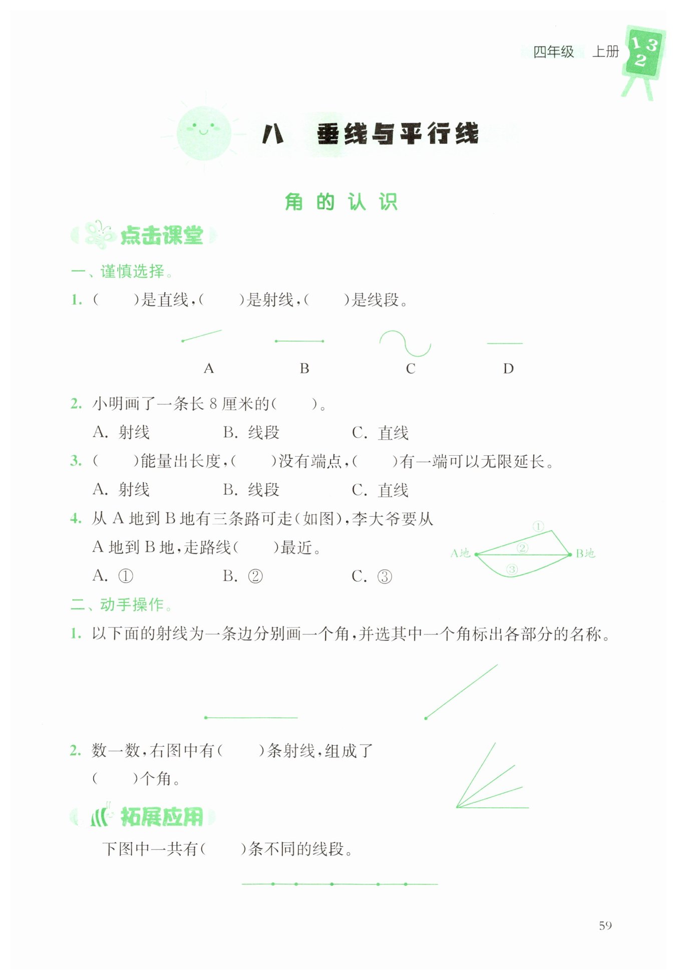 由于您沒(méi)有提供具體的圖形,無(wú)法直接解答線段數(shù)量的問(wèn)題。在蘇教版數(shù)學(xué)四年級(jí)上冊(cè)“角的認(rèn)識(shí)”章節(jié)中,數(shù)線段通常采用的方法是:先數(shù)出基本線段的條數(shù),再依次加上比基本線段條數(shù)少1的數(shù),直到加到1為止。例如,若一條直線上有n個(gè)端點(diǎn),則線段總數(shù)為n×(n-1)÷2。請(qǐng)您提供圖形,以便我為您準(zhǔn)確解答。