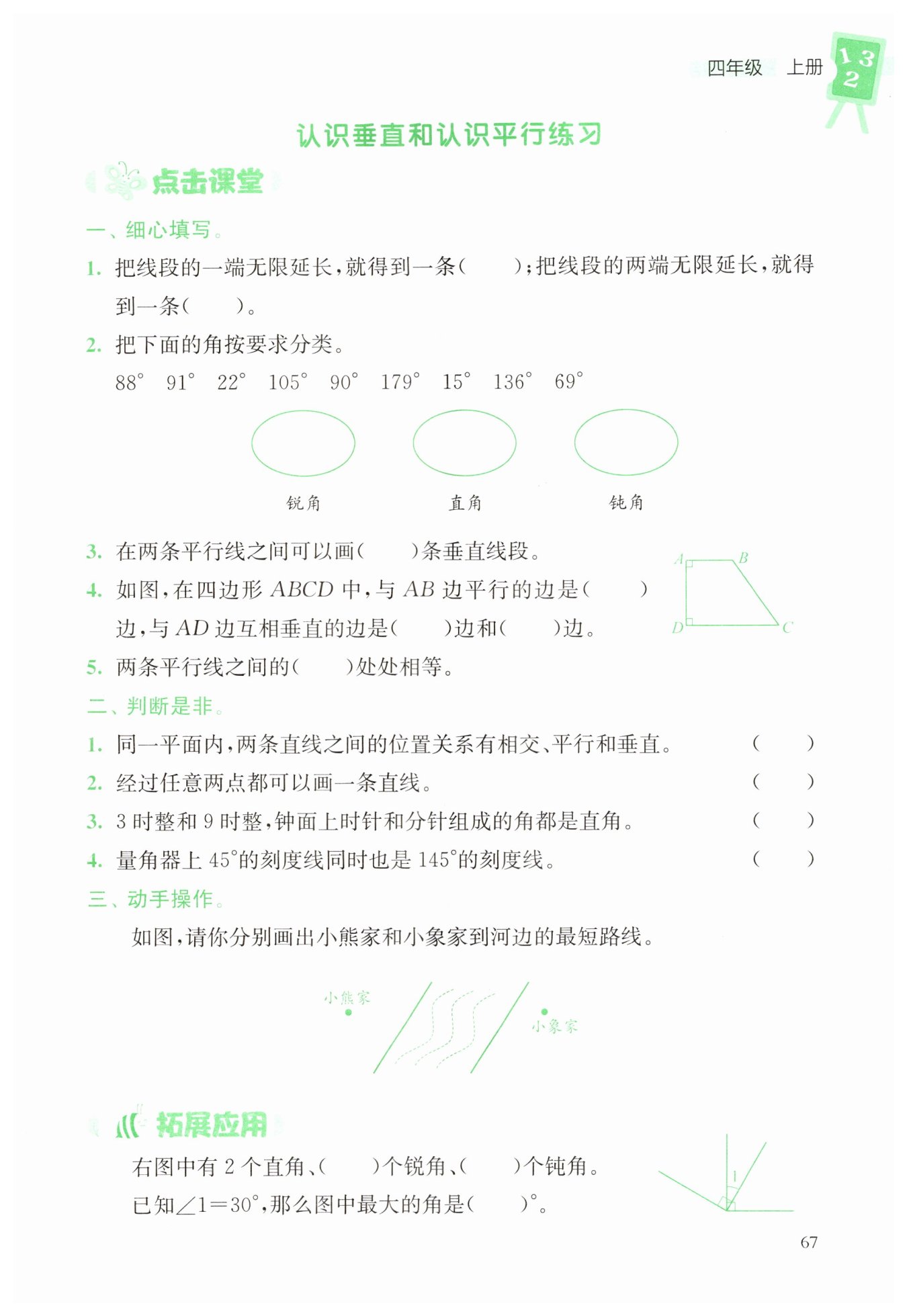 3. 3時整,時針指向3,分針指向12,夾角為90°;9時整,時針指向9,分針指向12,夾角也為90°,都是直角,所以該題正確。