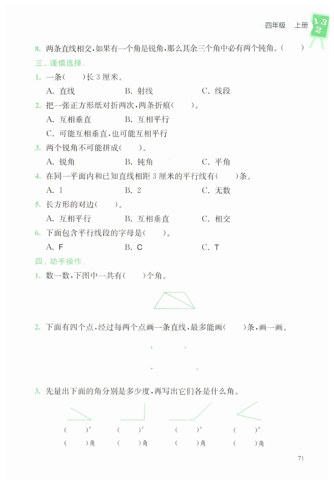 情況一:沿同一方向?qū)φ蹆纱?,折痕互相平行?br>情況二:沿不同方向(如先橫后豎)對折兩次,折痕互相垂直。