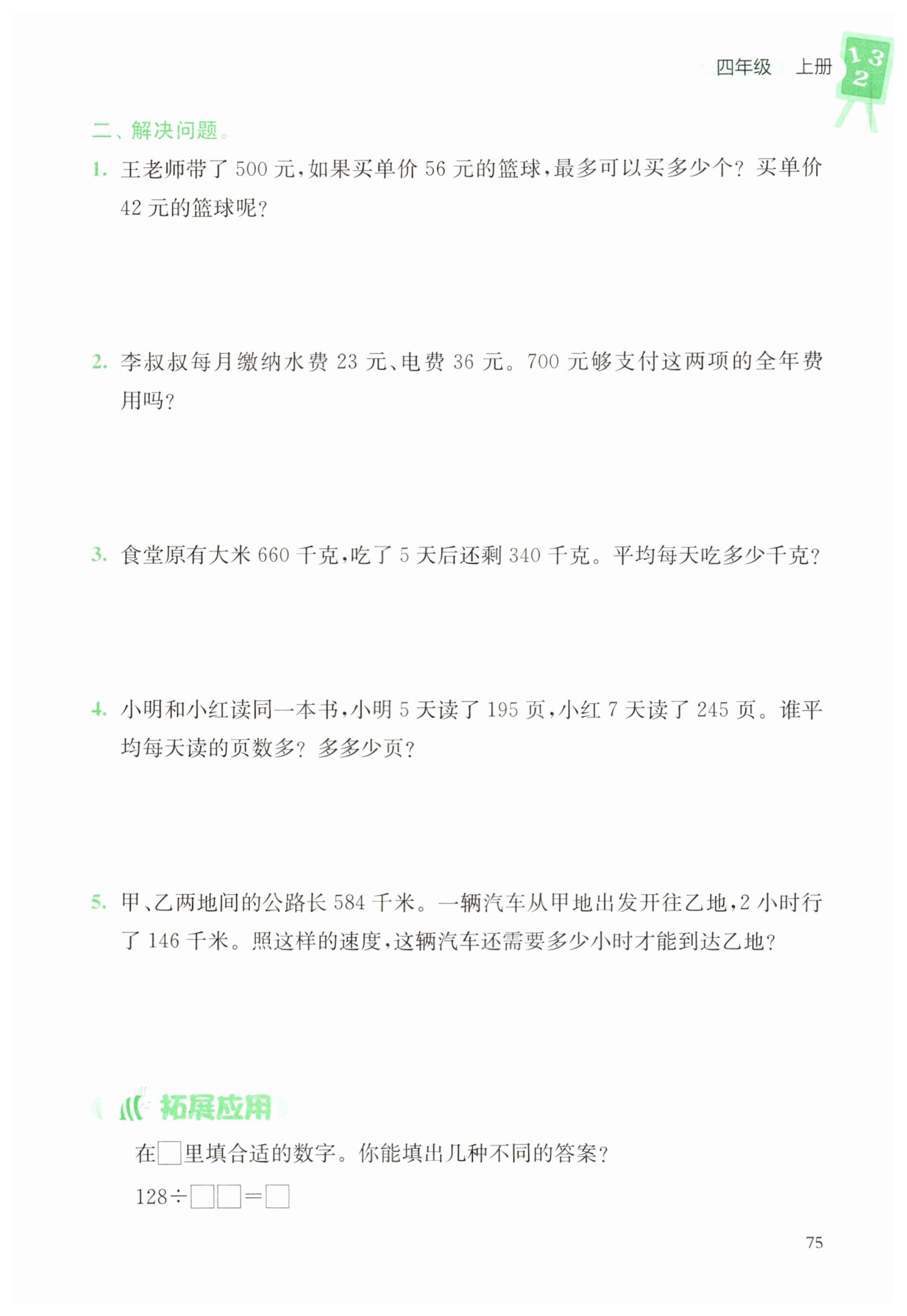 小明平均每天讀的頁數(shù):195 ÷ 5 = 39(頁) 小紅平均每天讀的頁數(shù):245 ÷ 7 = 35(頁) 39>35 小明平均每天讀的頁數(shù)多:39 - 35 = 4(頁) 答:小明平均每天讀的頁數(shù)多,多4頁。