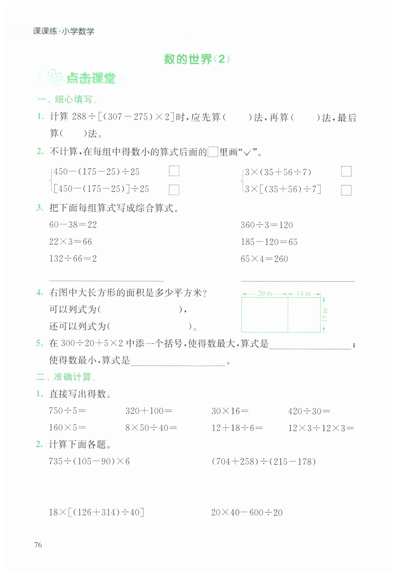 第二個算式:[450-(175-25)]÷25