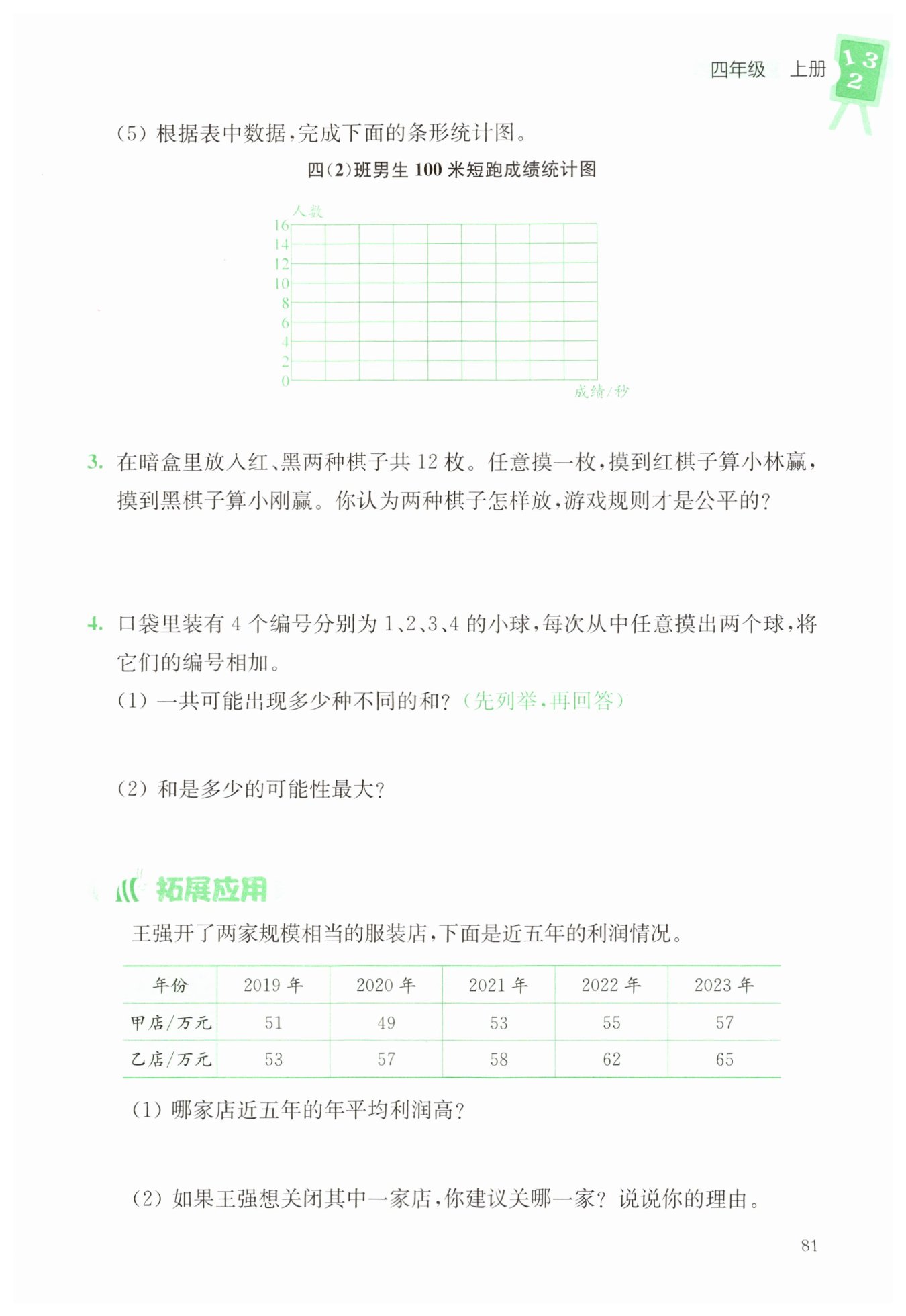 (2) 各和出現(xiàn)的次數(shù):3(1次),4(1次),5(2次),6(1次),7(1次)。
