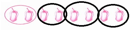 (1) 圈一圈:將8個物品,每2個圈一份,可以圈4份。