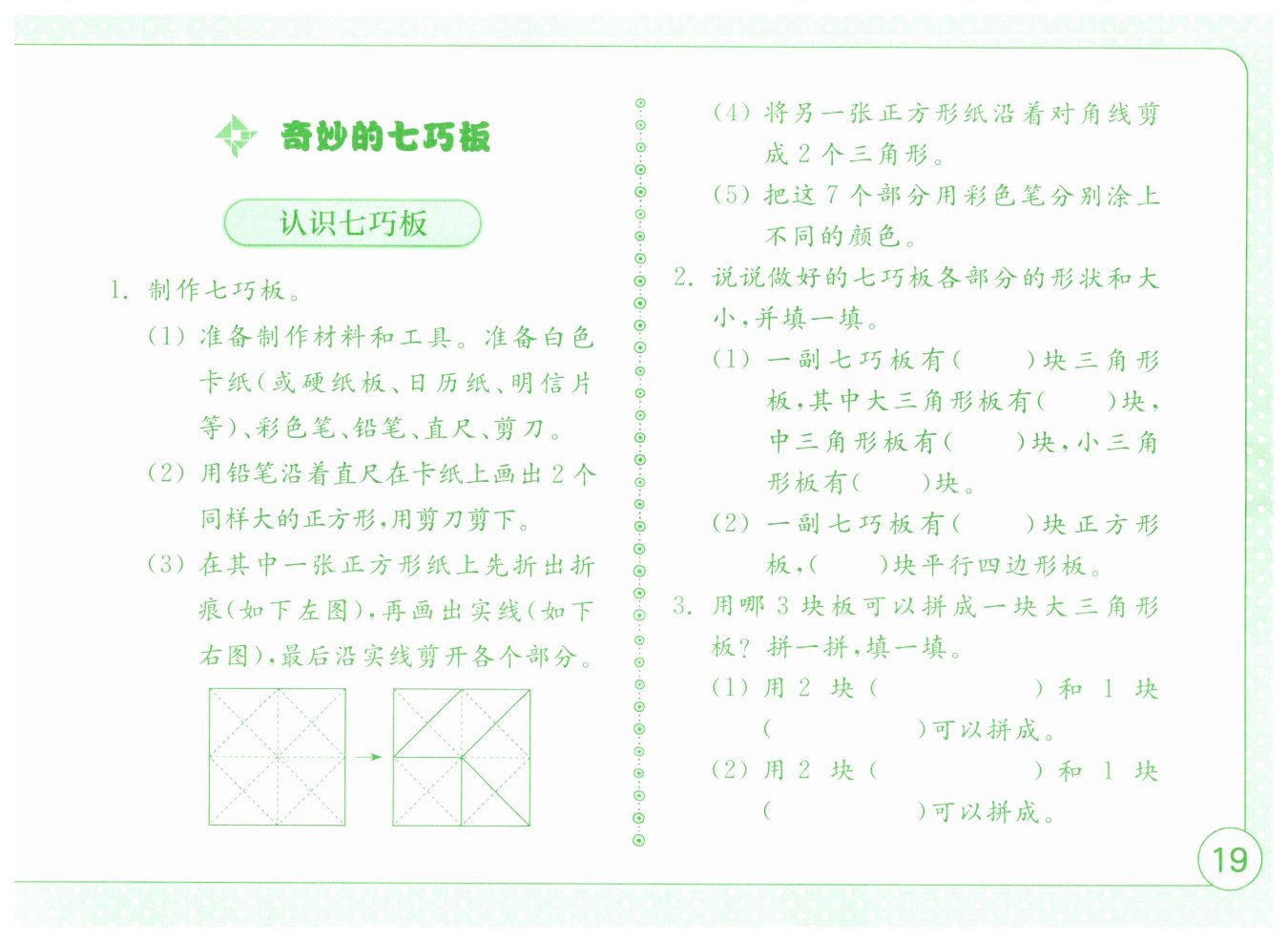 (2)一副七巧板有1塊正方形板,1塊平行四邊形板。