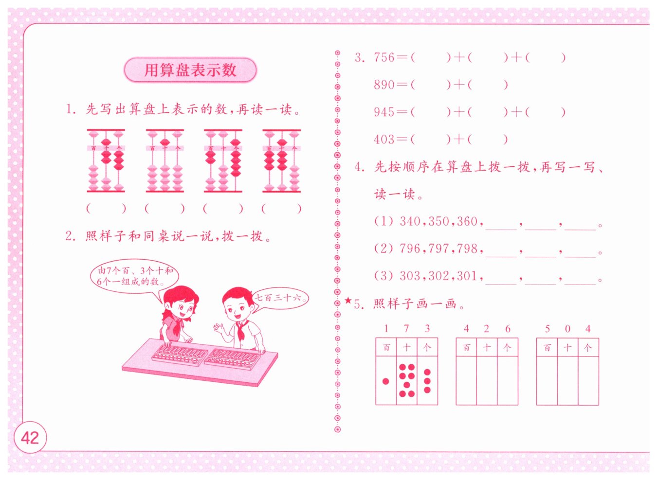 解析:本題考查算盤表示數(shù)以及萬以內(nèi)數(shù)的組成。