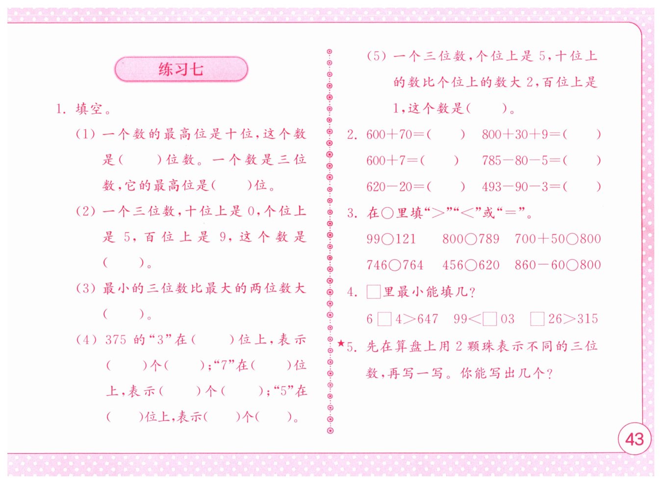 (3) 最小的三位數(shù)是100,最大的兩位數(shù)是99,所以最小的三位數(shù)比最大的兩位數(shù)大1。