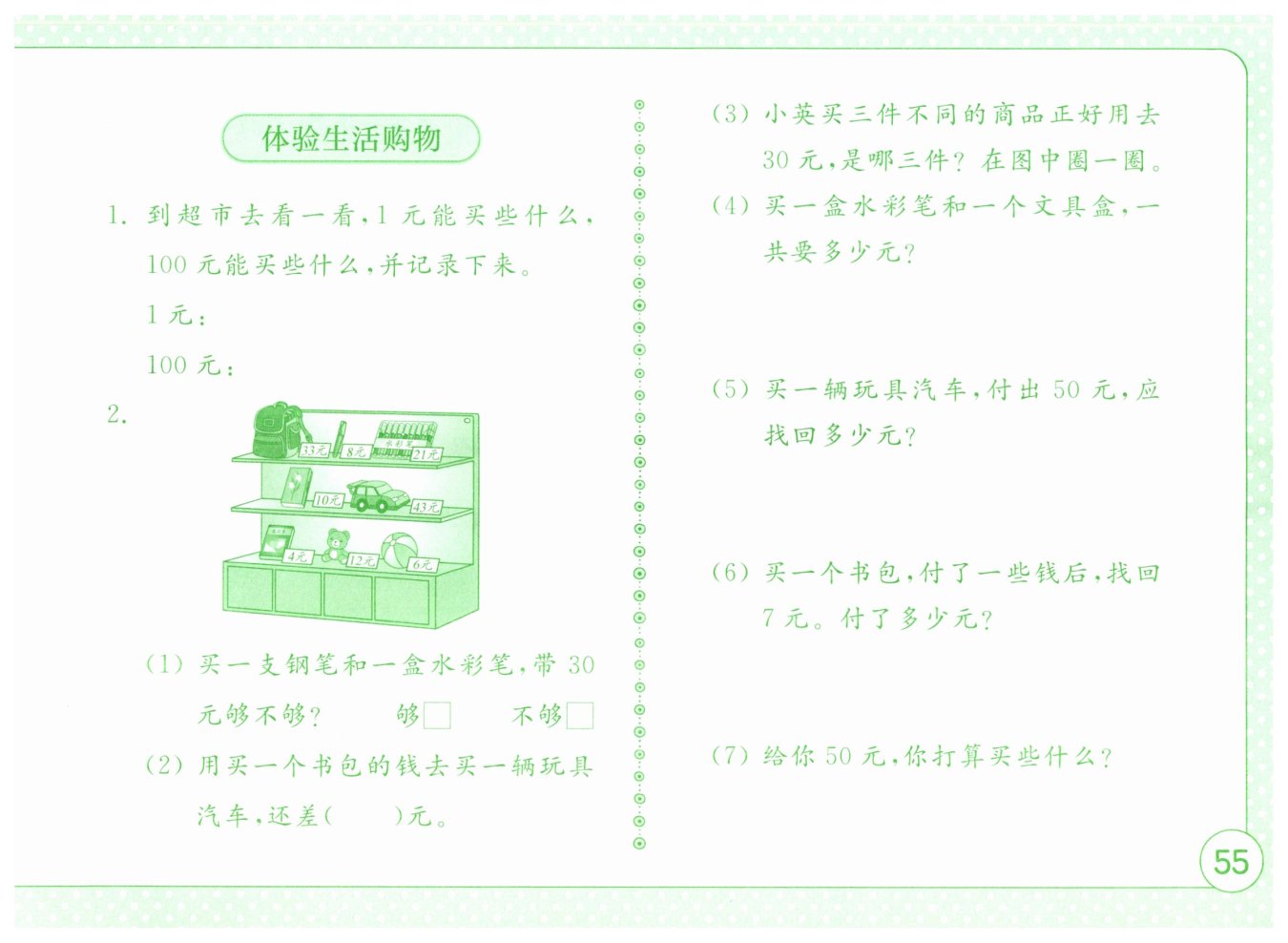 1元:1塊橡皮、1根棒棒糖、1袋小包裝紙巾。